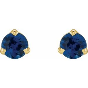 14K Yellow Gold Round Shape 3 Mm Natural Blue Sapphire 3-Claw Prong Earring