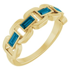 14K Yellow Gold Straight Baguette 4 X 2 Mm Polished London Blue Topaz Chain Link Ring Size 7