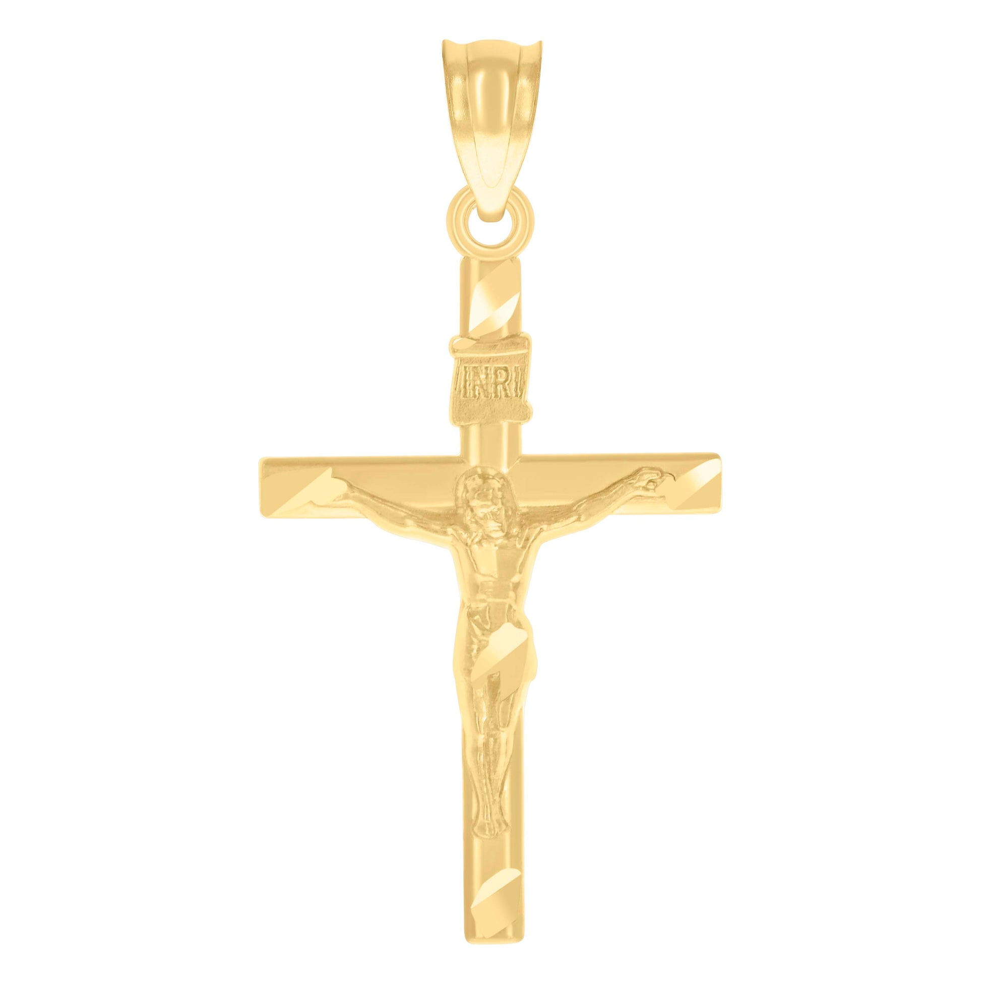 14K Yellow Gold Unisex Cross Crucifix Ht:28.4Mm Religious Pendant Charm
