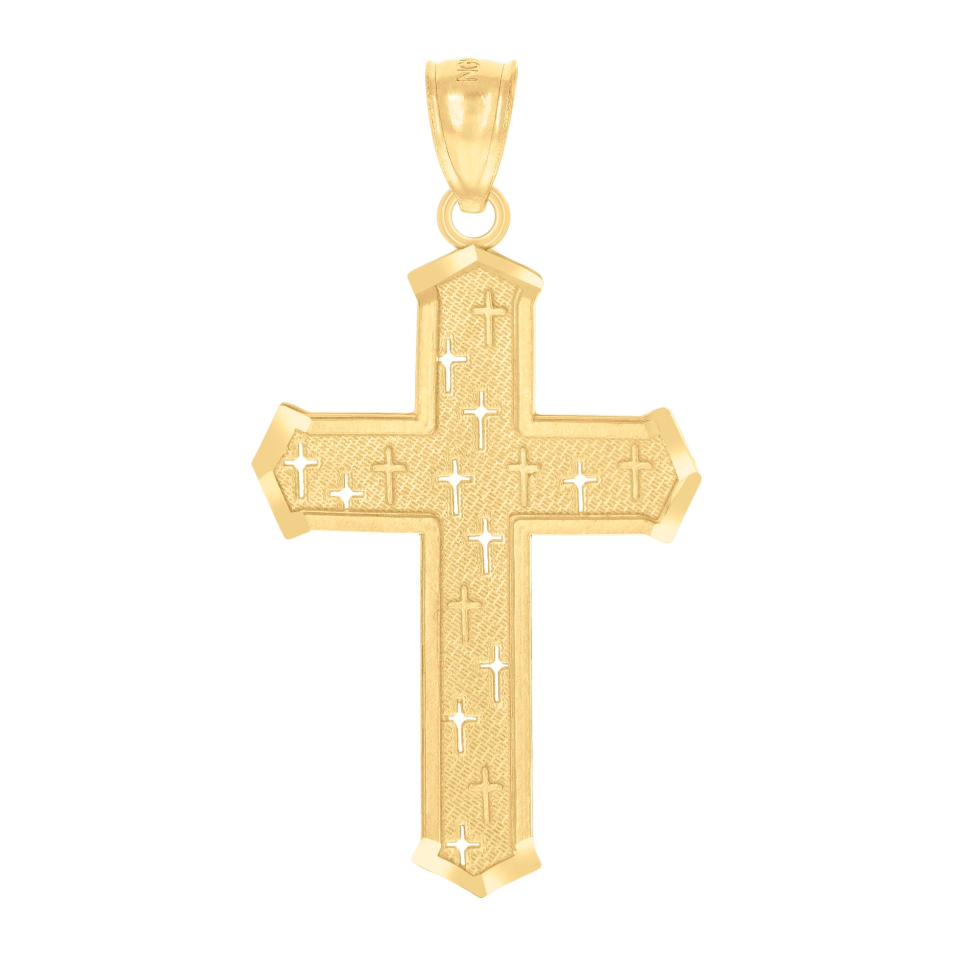 14K Yellow Gold Unisex Cross Pendant Religious Charm