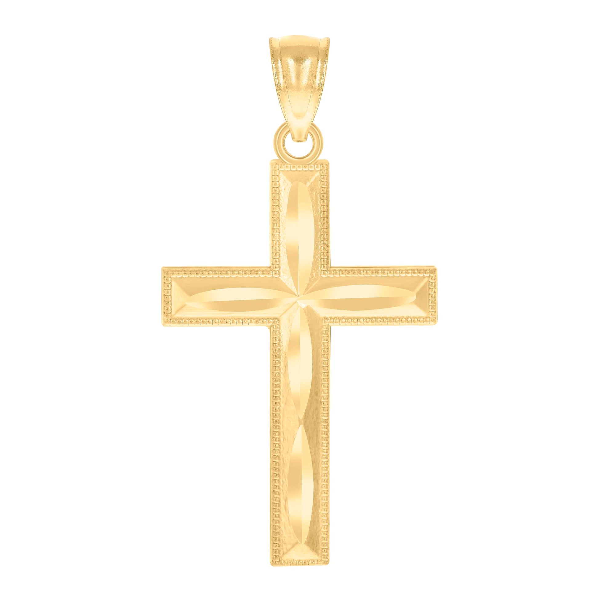14K Yellow Gold Unisex Diamond-Cut Cross Religious Charm Pendant