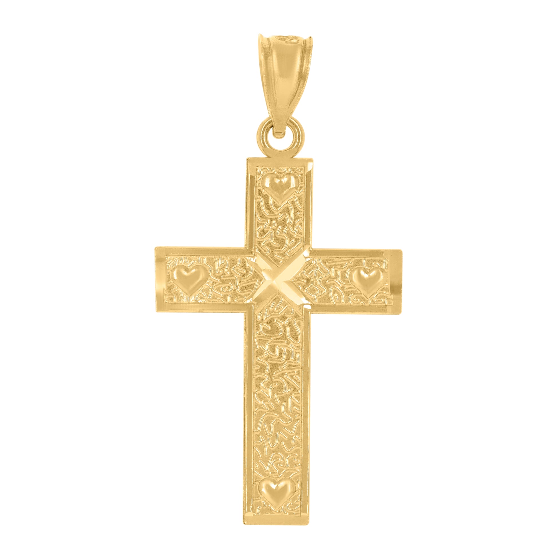 14K Yellow Gold Unisex God Loves Me Cross Religious Pendant Charm