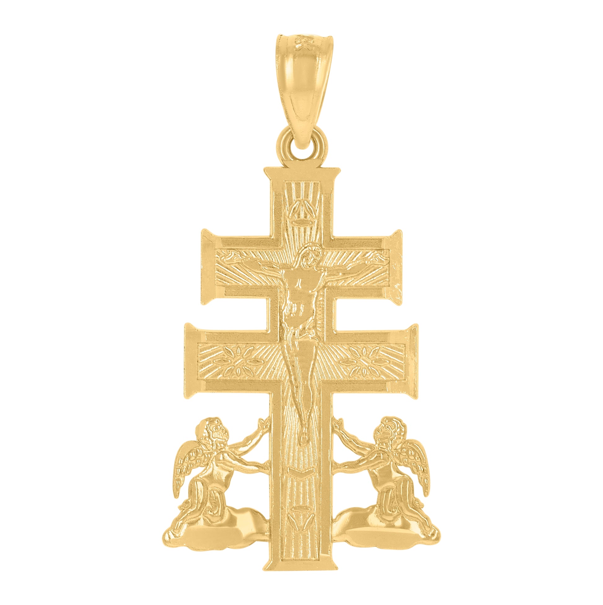 14K Yellow Gold Womens Caravaca Cross Crucifix Angel Ht:27.9Mm Religious Pendant Charm