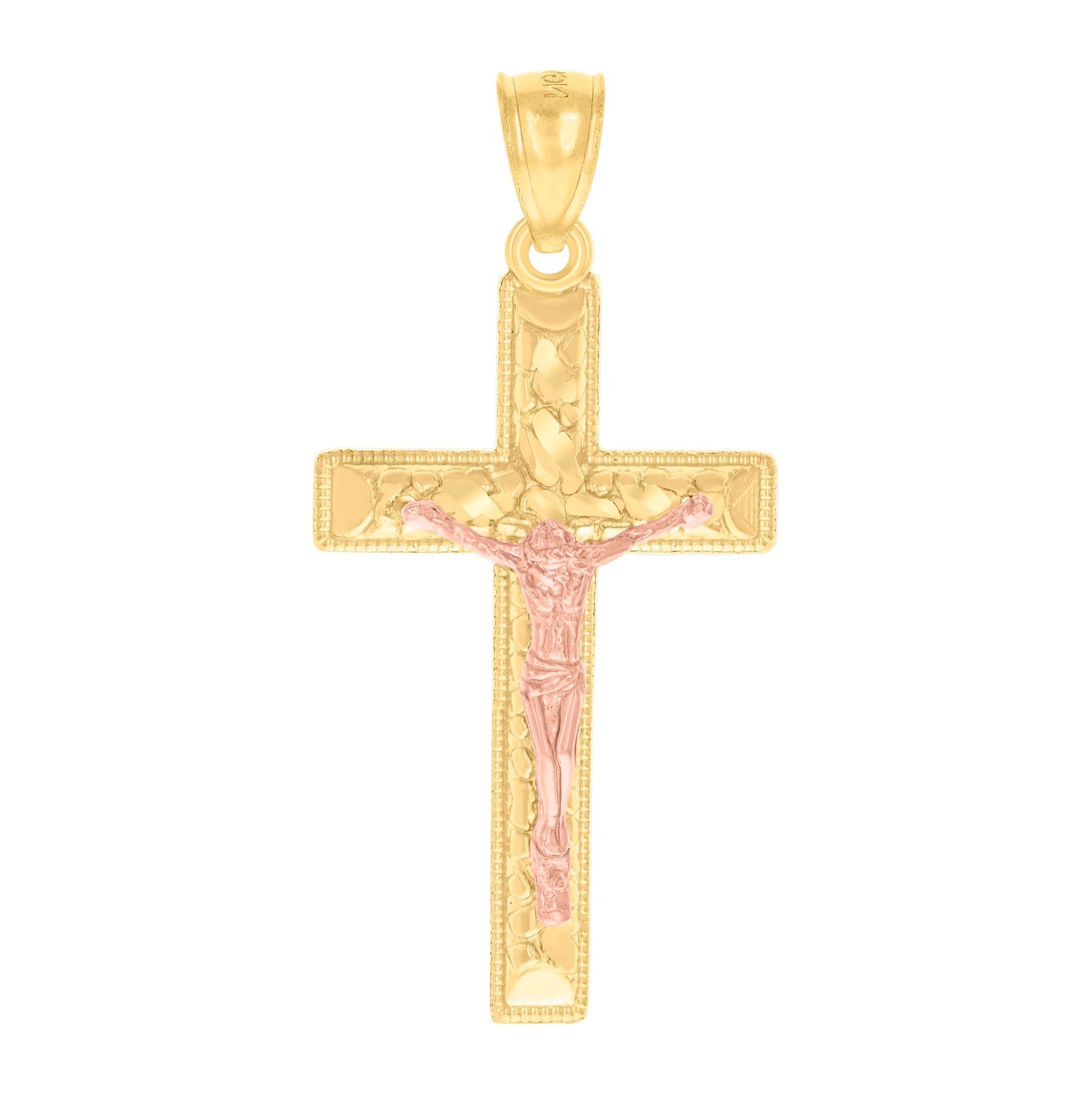 14K Yellow Gold Womens Diamond-Cut Cross Crucifix Ht:46.5Mm Religious Pendant Charm
