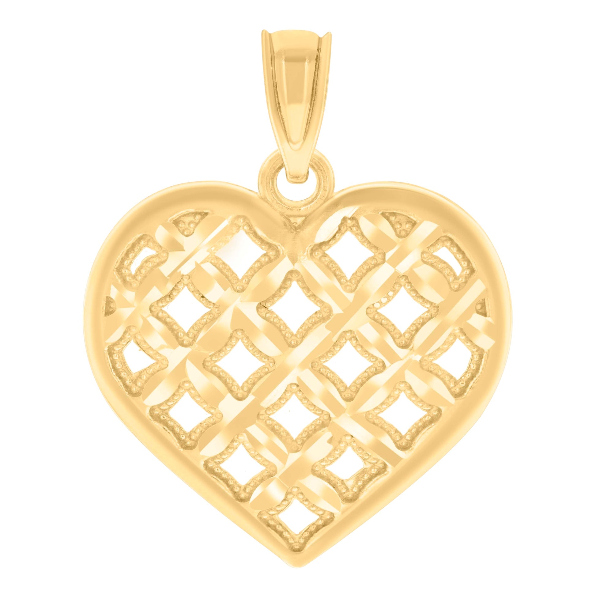 14K Yellow Gold Womens Diamond-Cut Heart Ht:21Mm Pendant Charm