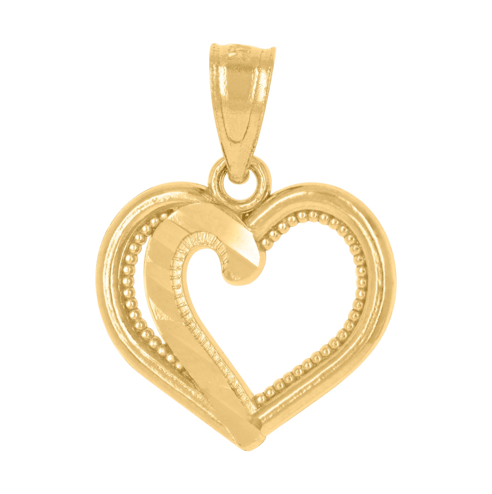 14K Yellow Gold Womens Diamond-Cut Heart Pendant Charm