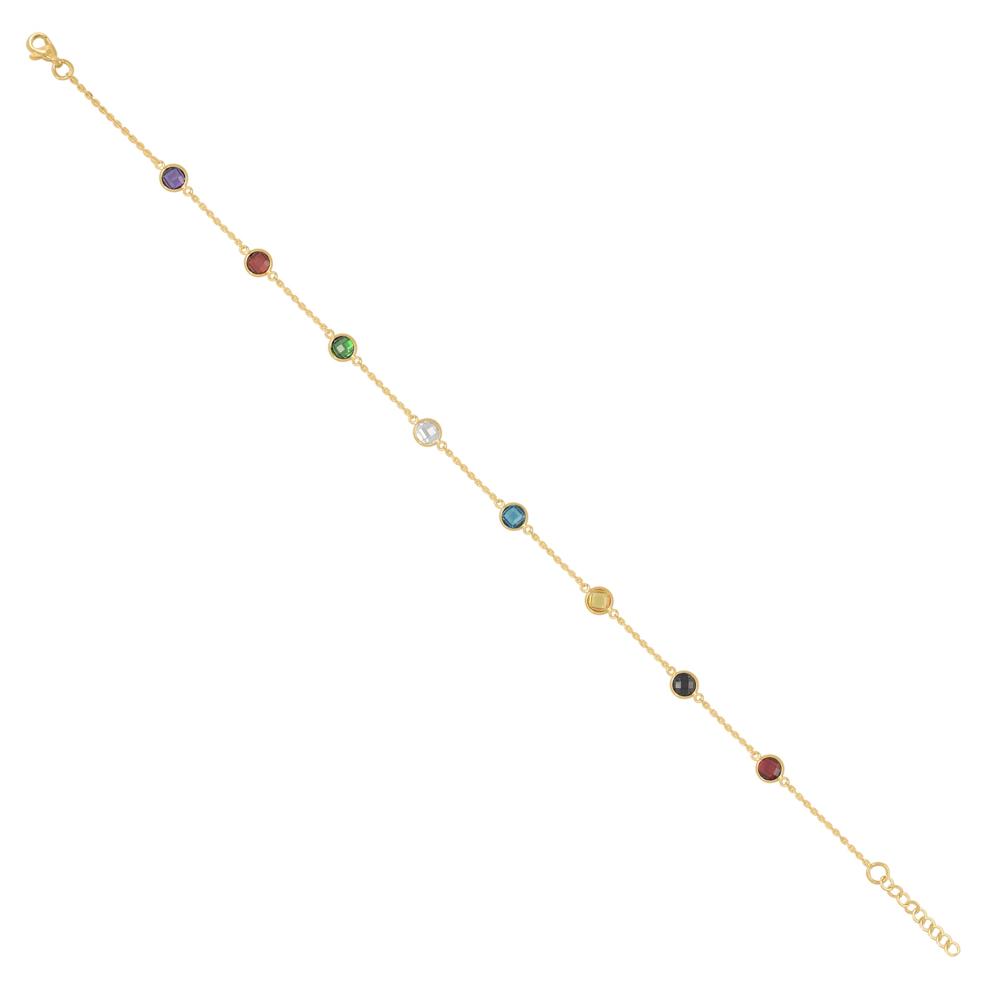 14K Yellow Gold Womens Multi-Color Cubic Zirconia Chain Anklet Size 10 Inches