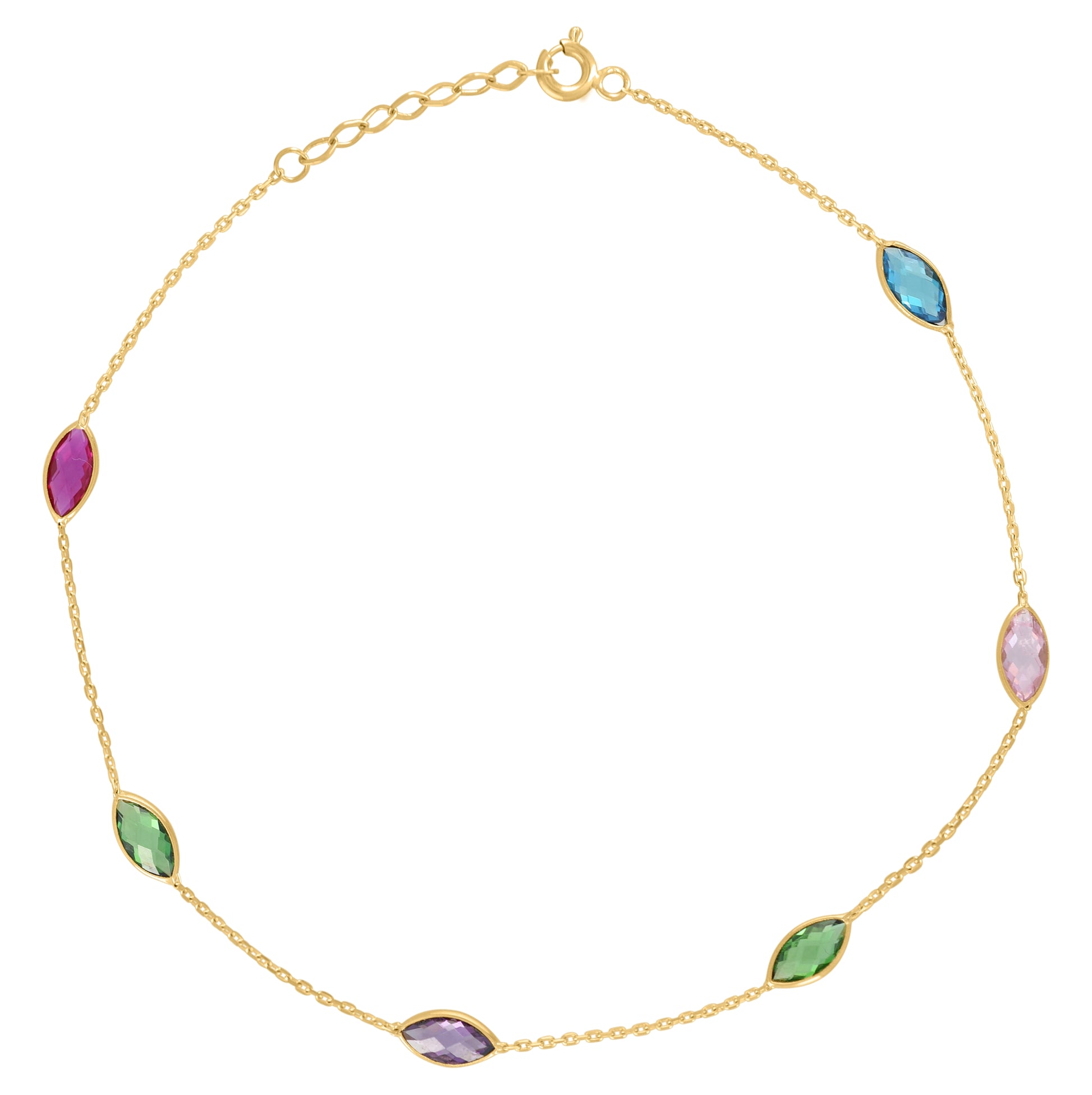 14K Yellow Gold Womens Multi-Color Marquise Cubic Zirconia Chain Anklet Size 10 Inches