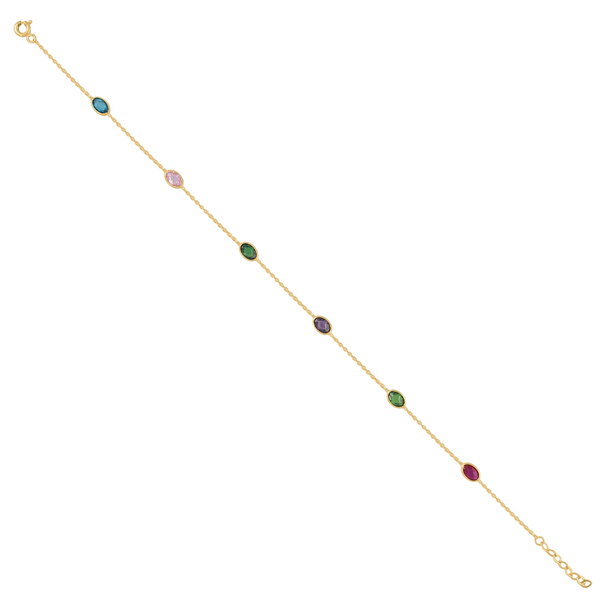 14K Yellow Gold Womens Multi-Color Oval Cubic Zirconia Chain Anklet Size 10 Inches
