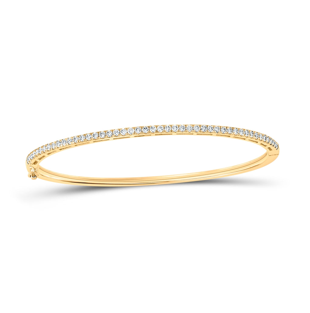 14K Yellow Gold Womens Round Diamond Single Row Bangle Bracelet 1 Cttw