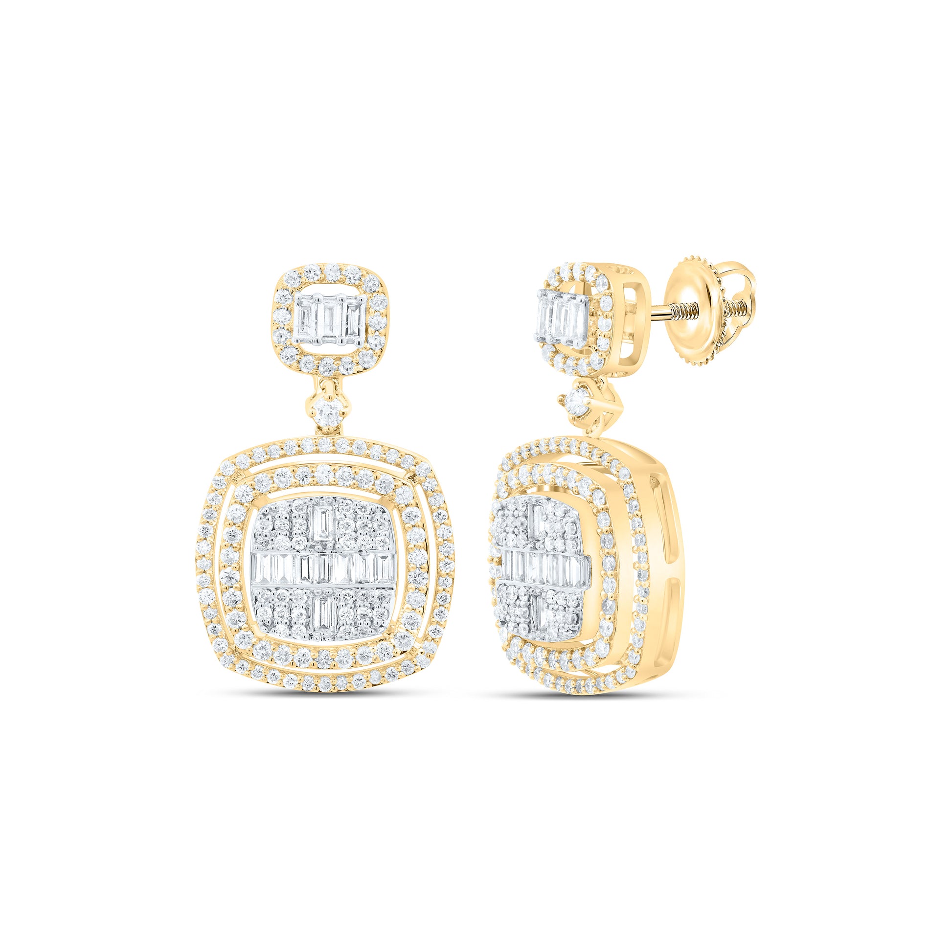 14K Yellow or White Gold 1 Ctw Natural Diamond Fashion Cushion Baguette Dangling Earring