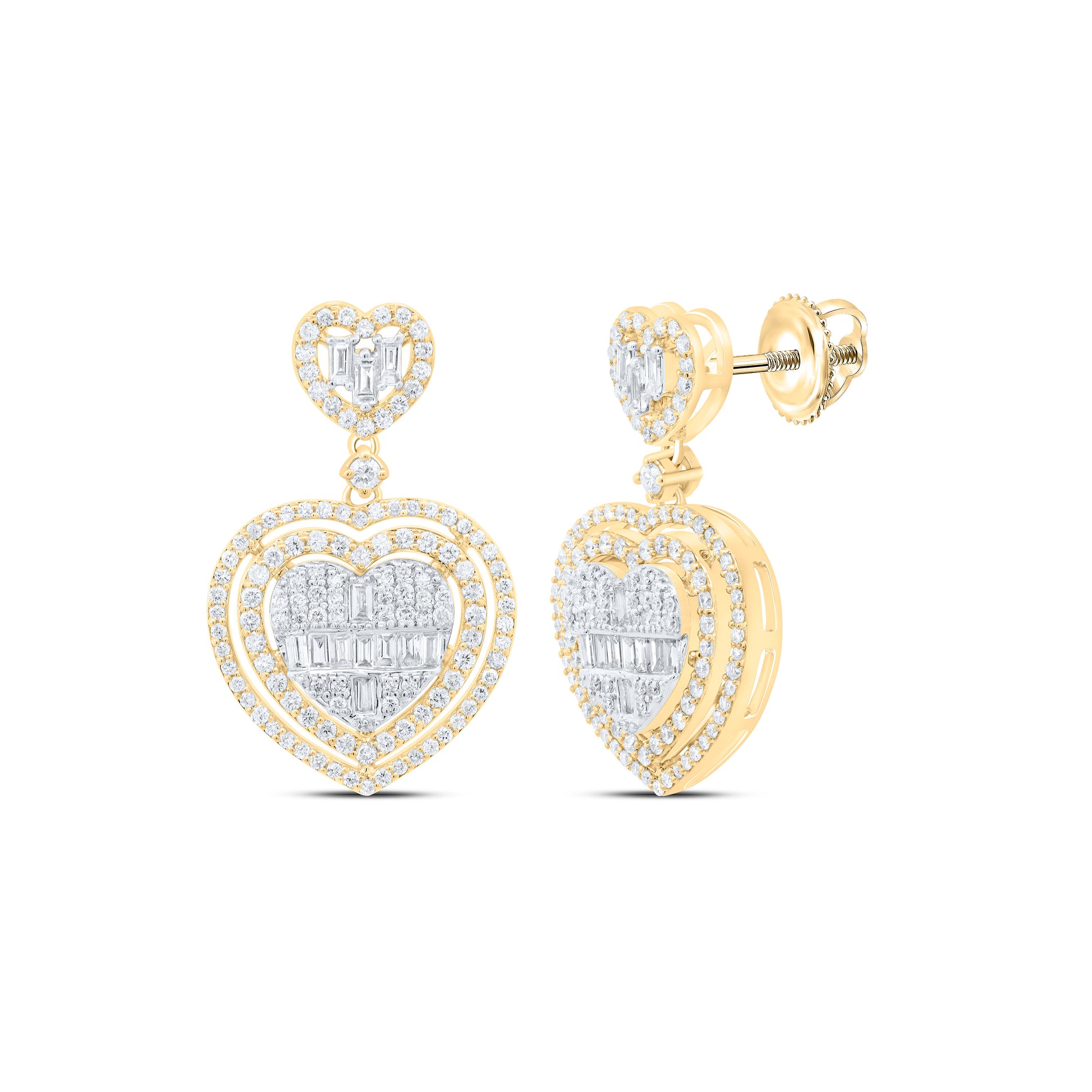 14K Yellow or White Gold 1 Ctw Natural Diamond Fashion Heart Baguette Dangling Earring