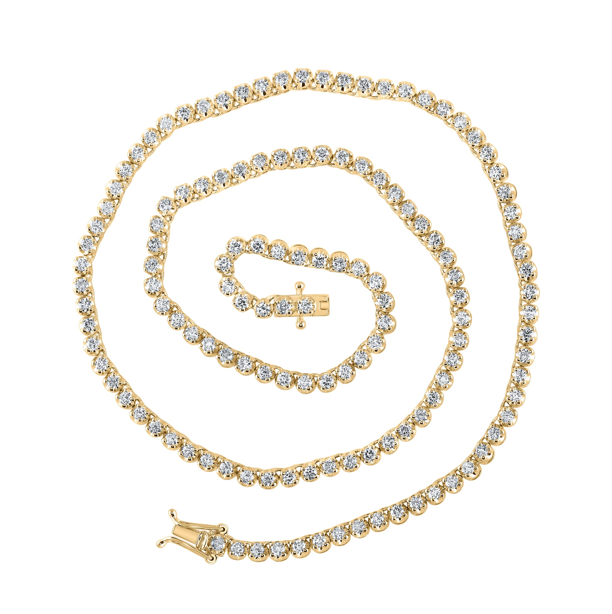14K Yellow Or White Gold Mens Round Diamond 16-inch Single Row Tennis Chain Necklace 4-3/8 Cttw, Length: 16 In