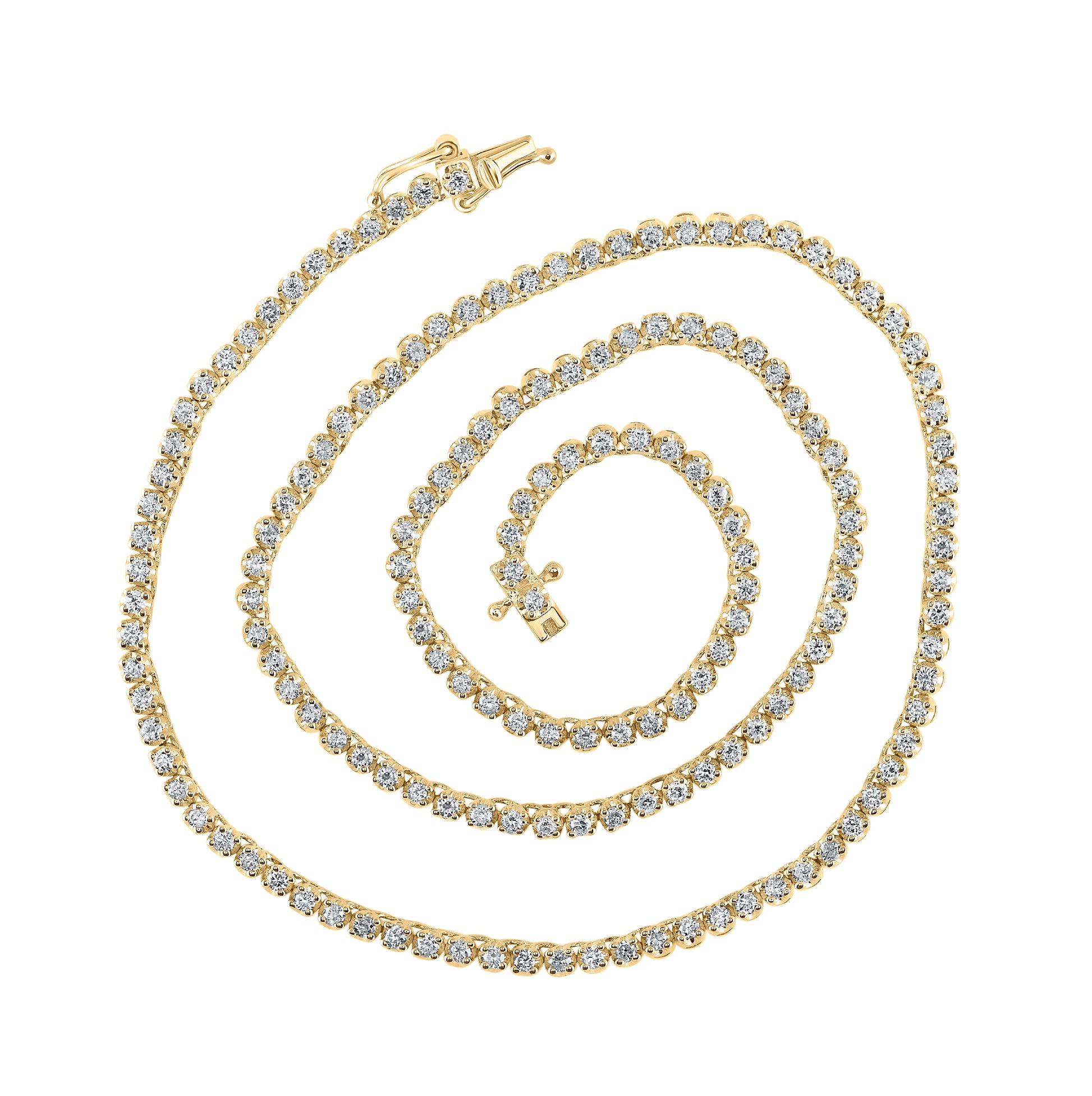 14K Yellow Or White Gold Mens Round Diamond 16-inch Tennis Chain Necklace 2-7/8 Cttw, Length: 16 In