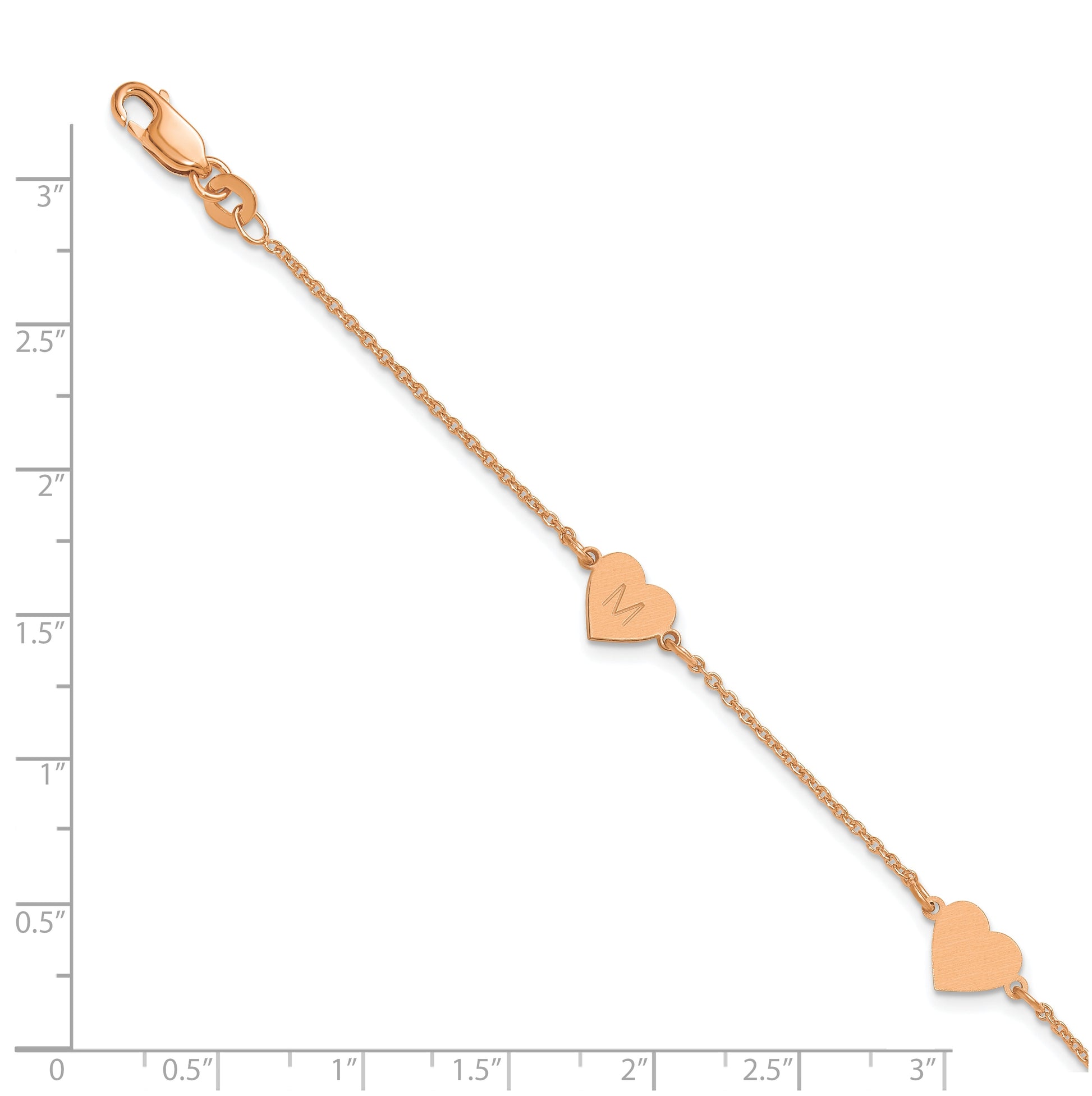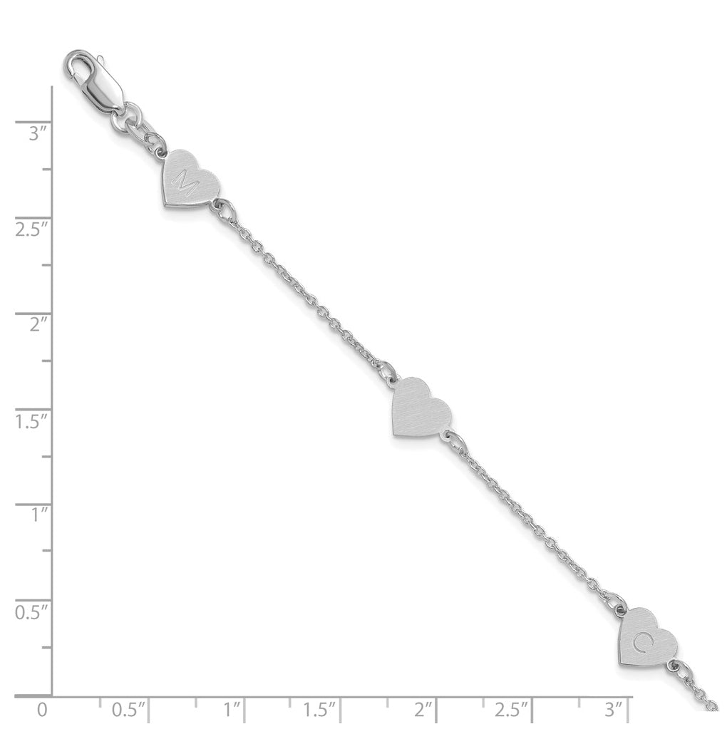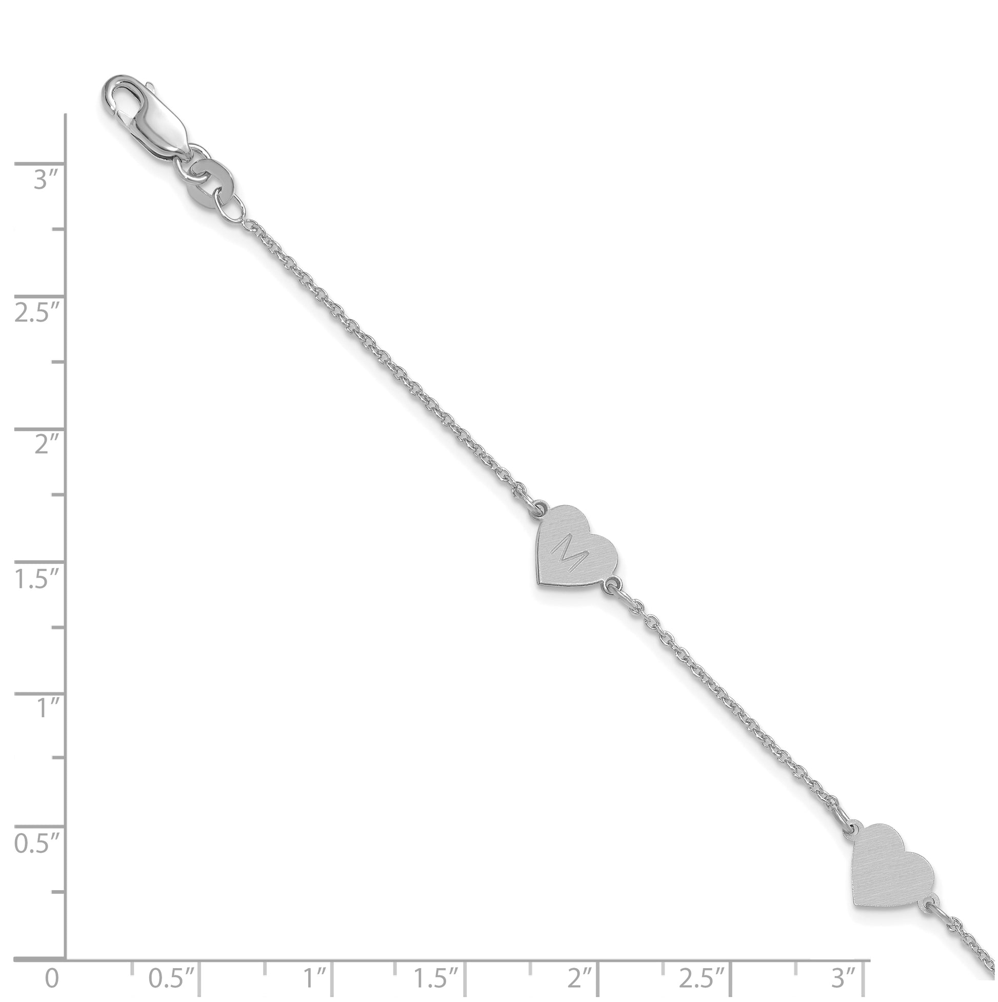14K Yellow Or White Or Rose Gold Or Sterling Silver Brushed Station Heart Bracelet