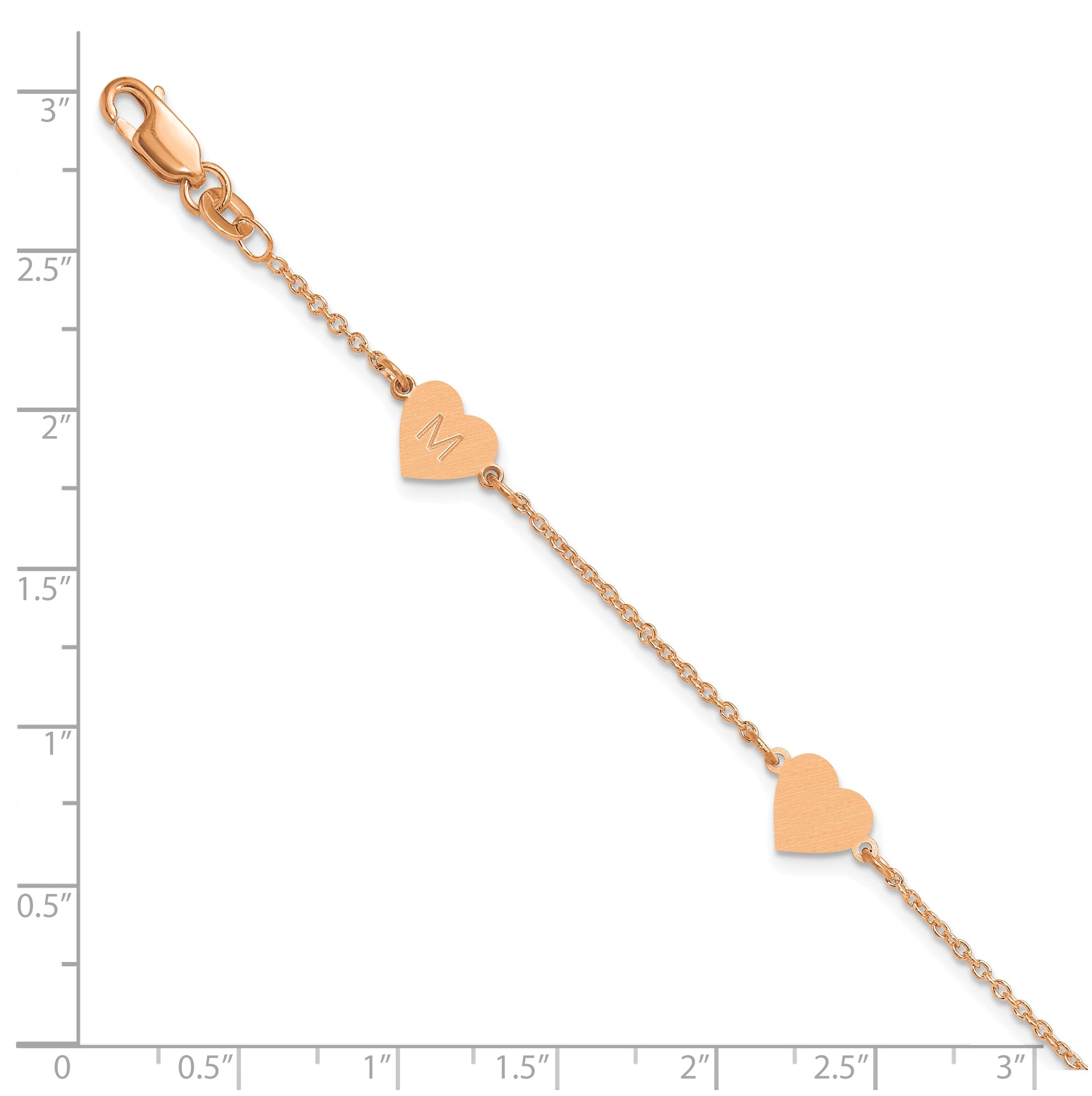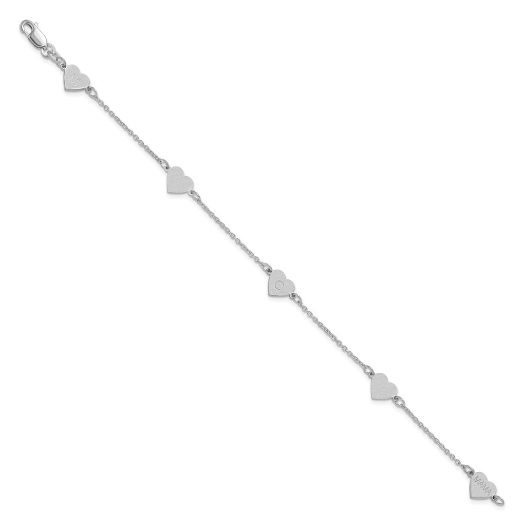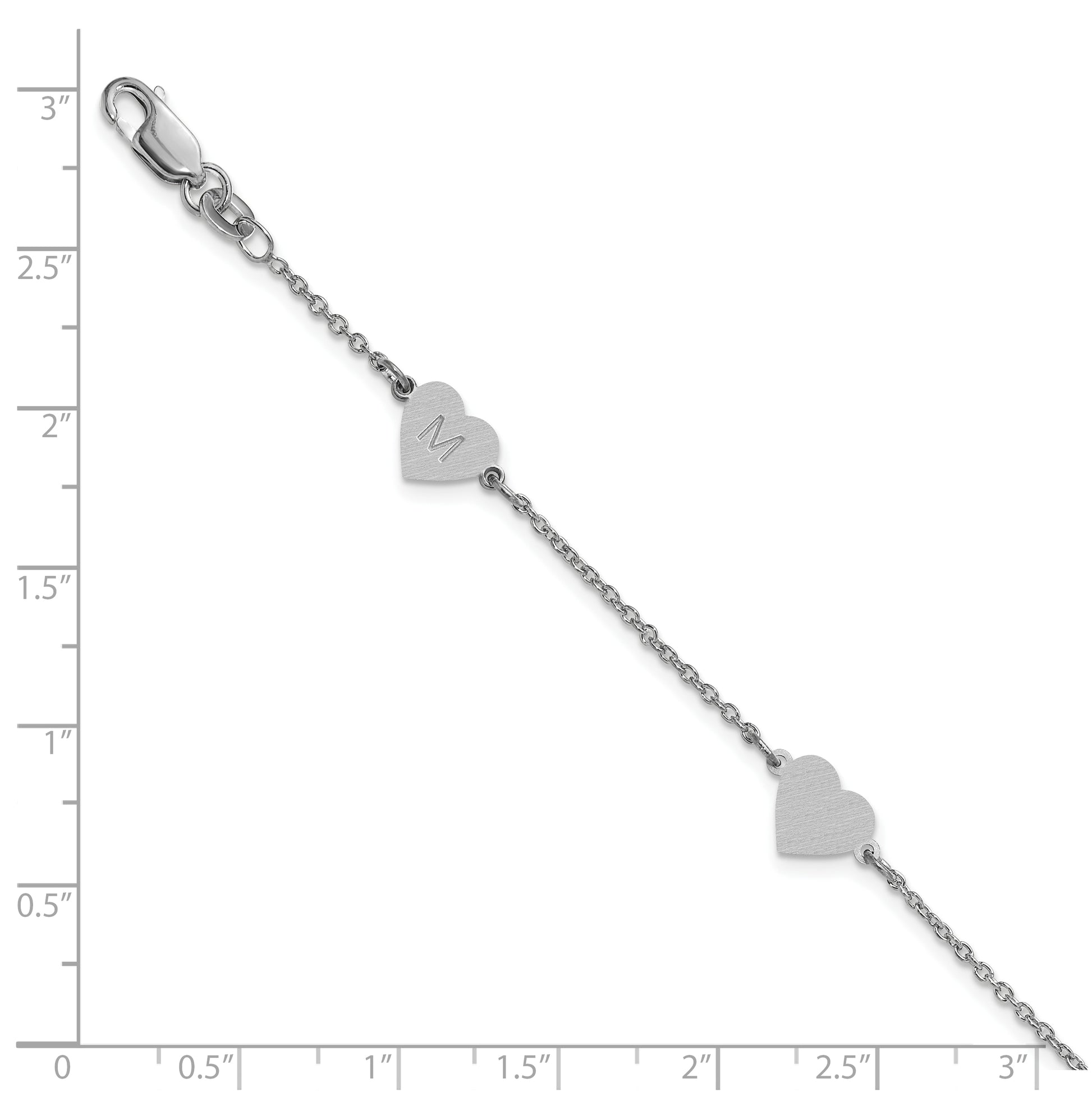 14K Yellow Or White Or Rose Gold Or Sterling Silver Brushed Station Heart Bracelet