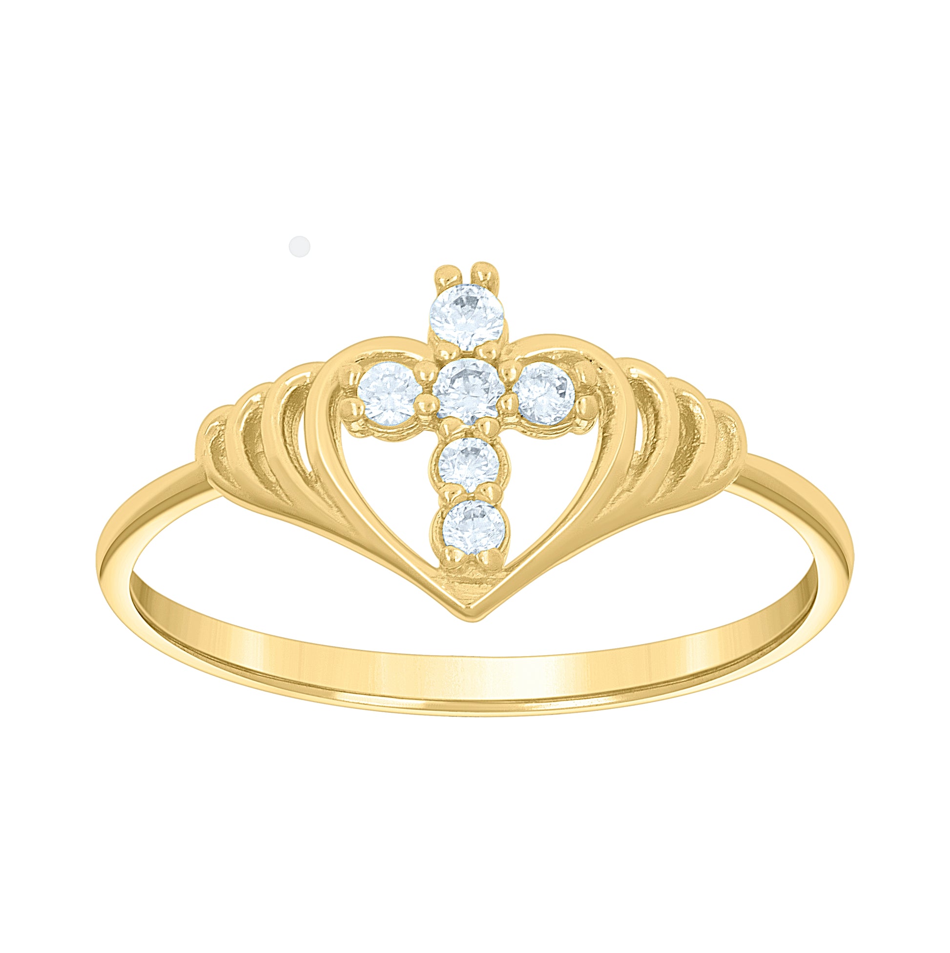 14K Yellow Womens Gold Cubic Zirconia Cross Heart Ring