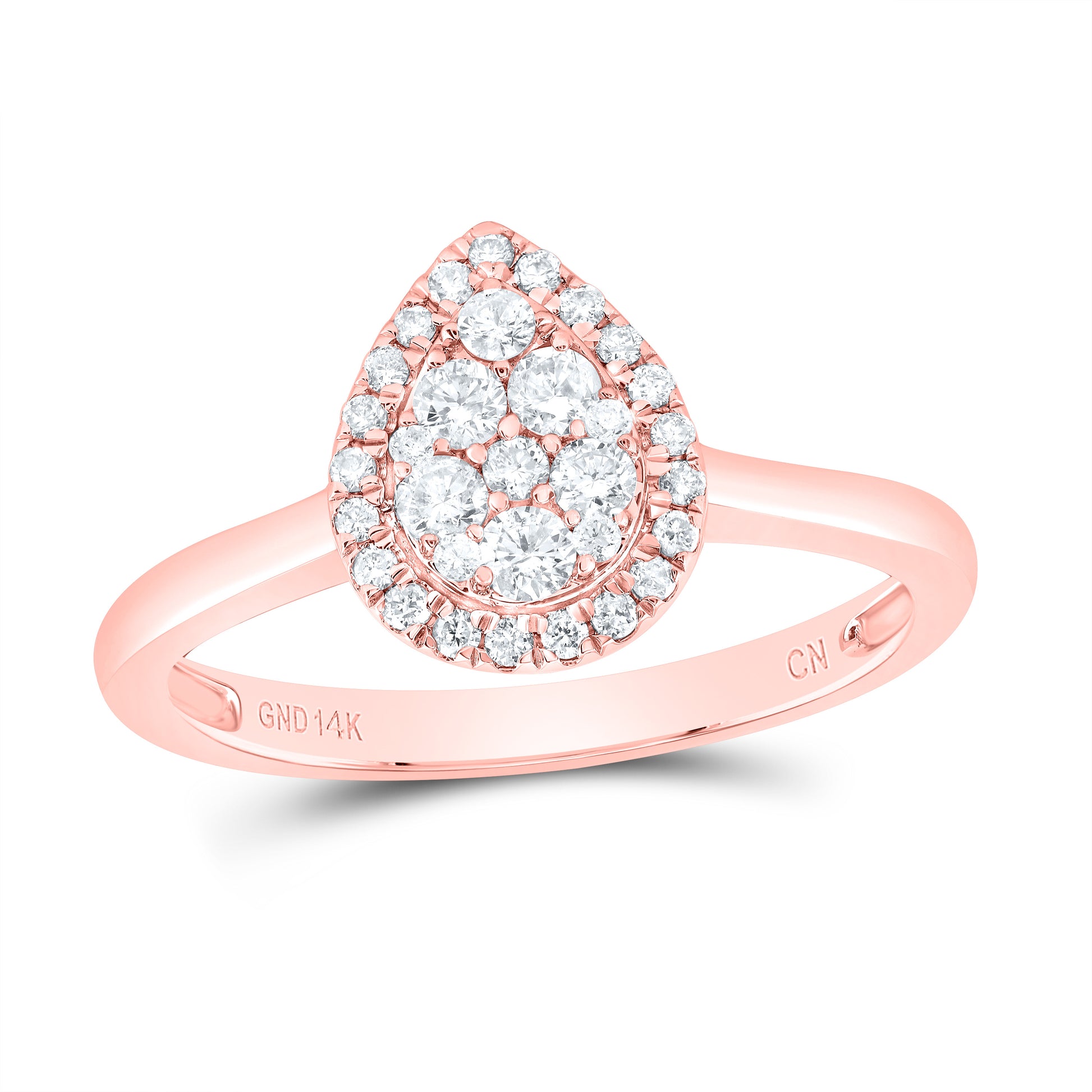 14kt Rose Gold 1/3 Cttw Natural Diamond Fashion Pear Wedding Engagement Anniversary Ring, Women Size: 5-9