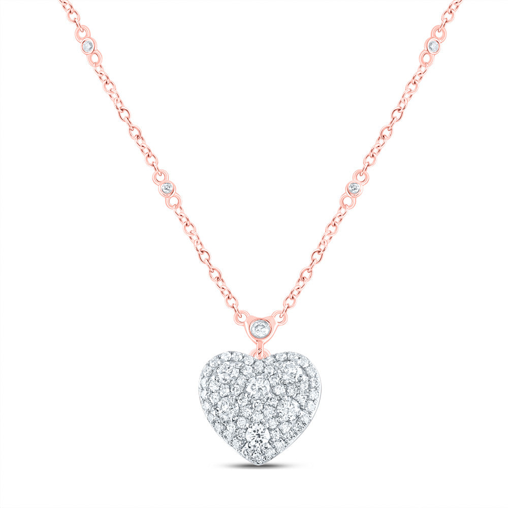 14kt Rose Gold 3/4 Cttw Natural Diamond Fashion Heart Necklace, Length: 18 Inch