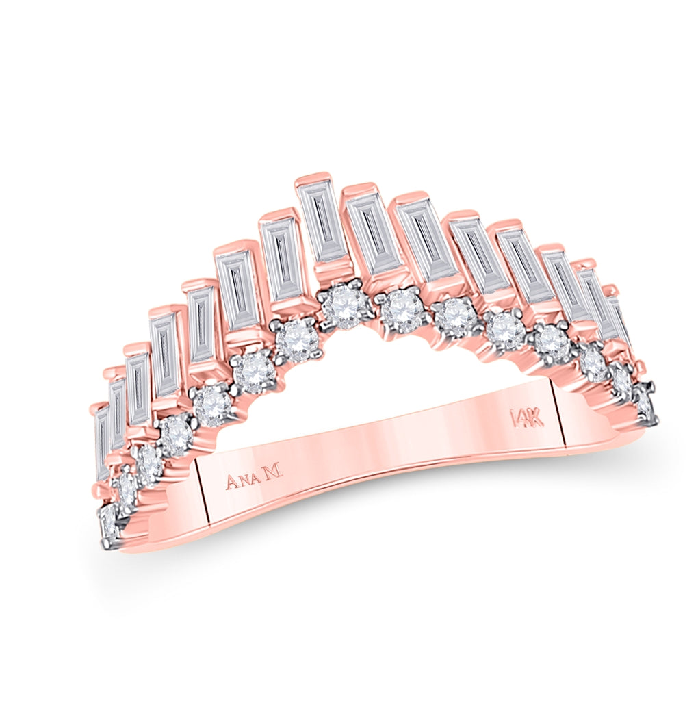 14kt Rose Gold Womens Baguette Diamond Fashion Modern Cocktail Ring 3/4 Cttw