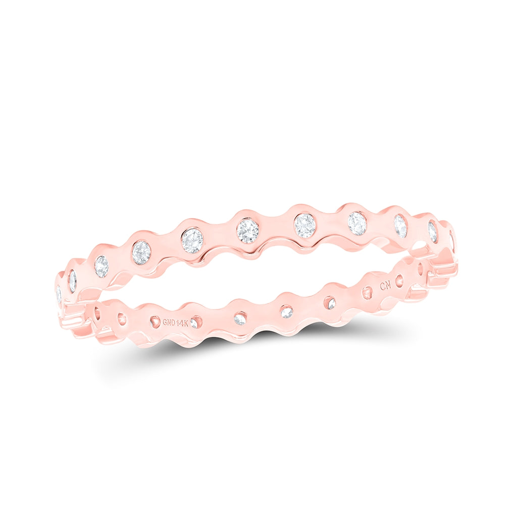 14kt Rose Gold Womens Round Diamond Machine-set Band Ring 1/5 Cttw