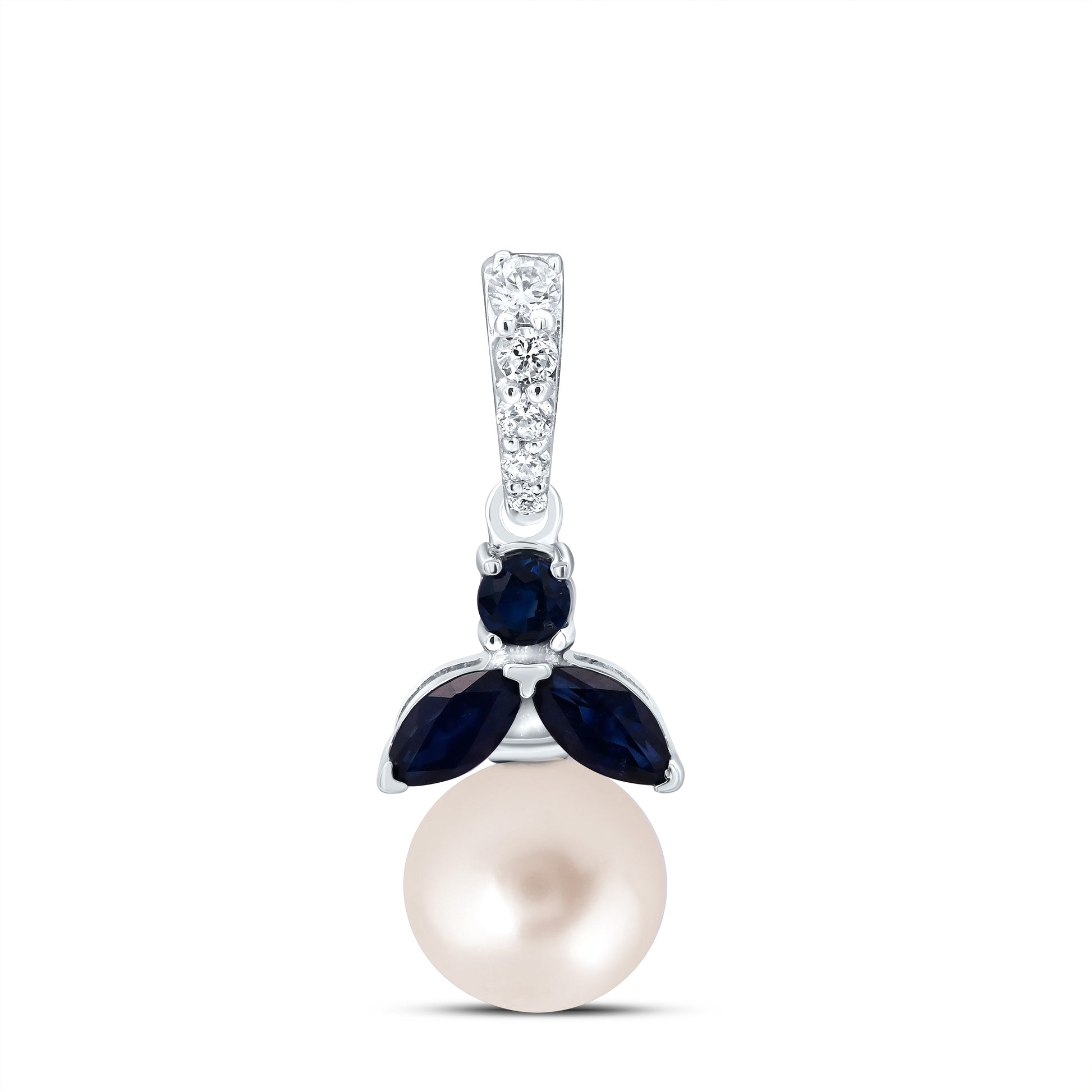14kt White Gold 1/20 Cttw Diamond Ana M and 1/5 Bs, 6mm-pearl Natural Gem Pendant