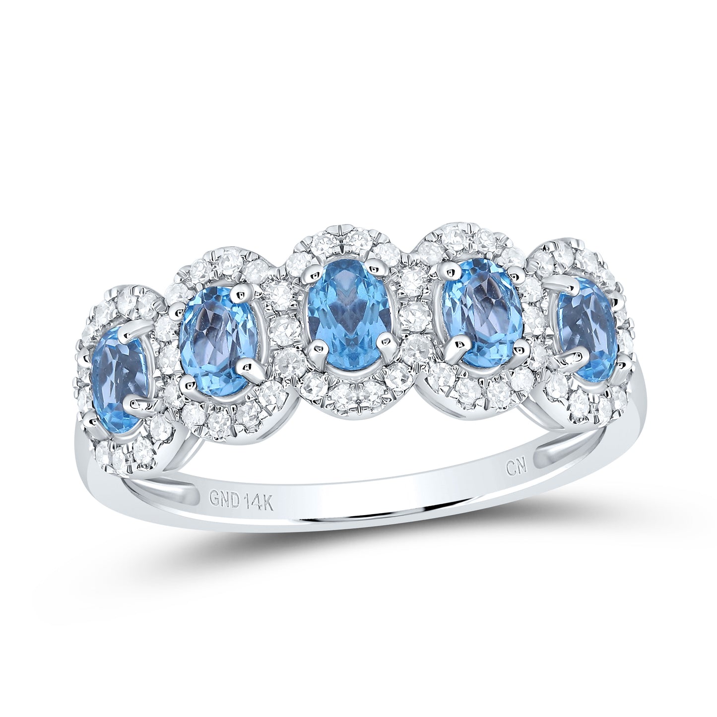 14kt White Gold 1/4 Cttw Natural Diamond and 1 Cttw Ov-blue Topaz Wedding Engagement Anniversary Band, Women Size: 5-9