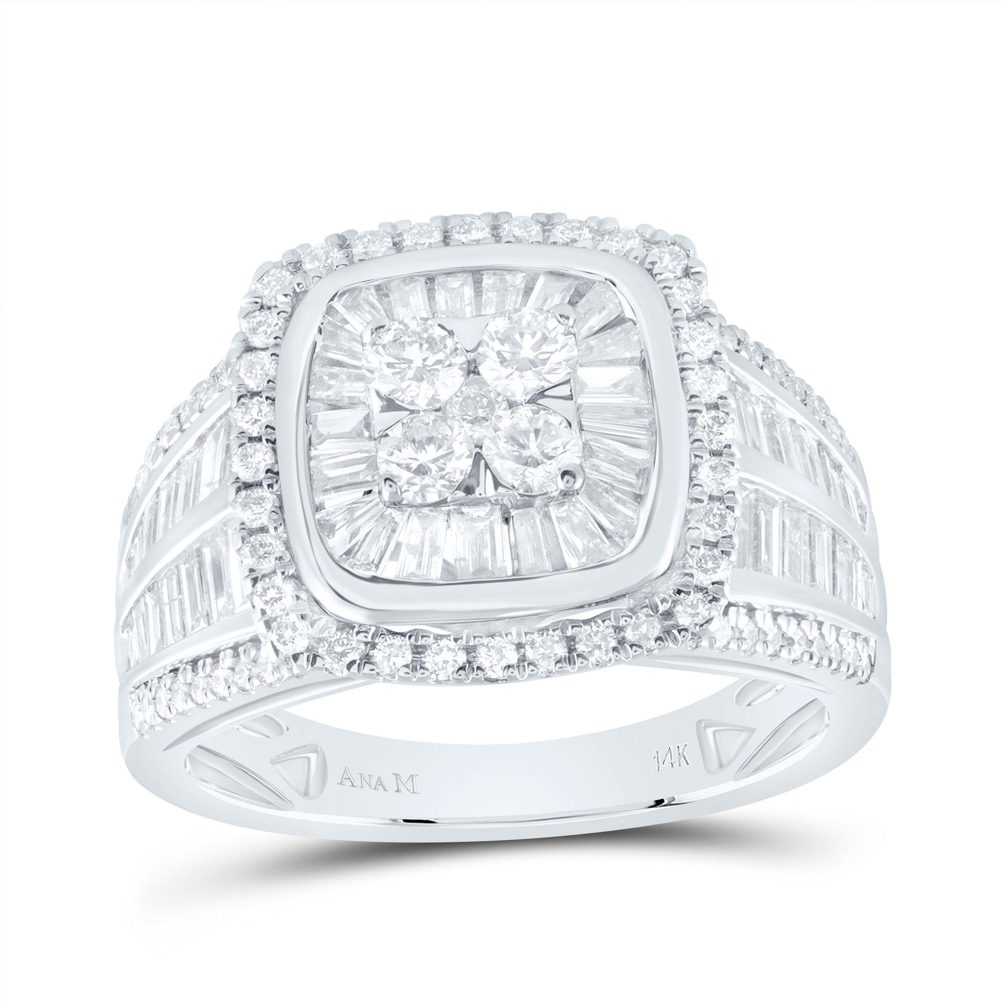 14kt White Gold 1 5/8 Cttw Diamond Ana M Cushion Single Halo Wedding Engagement Anniversary Bridal Ring, Women Size: 5-9