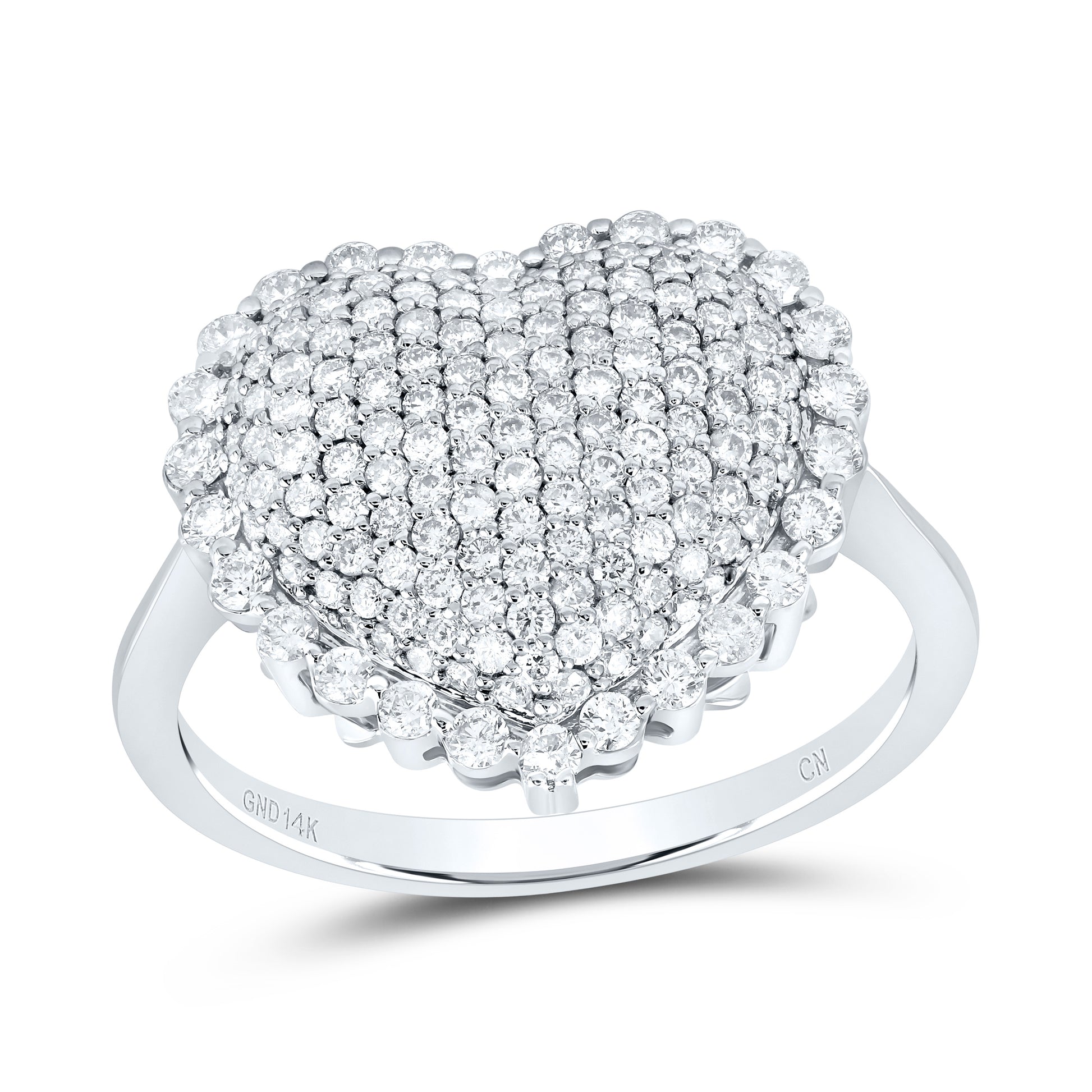 14kt White Gold 1 Cttw Natural Diamond Fashion Heart Wedding Engagement Anniversary Ring, Women Size: 5-9