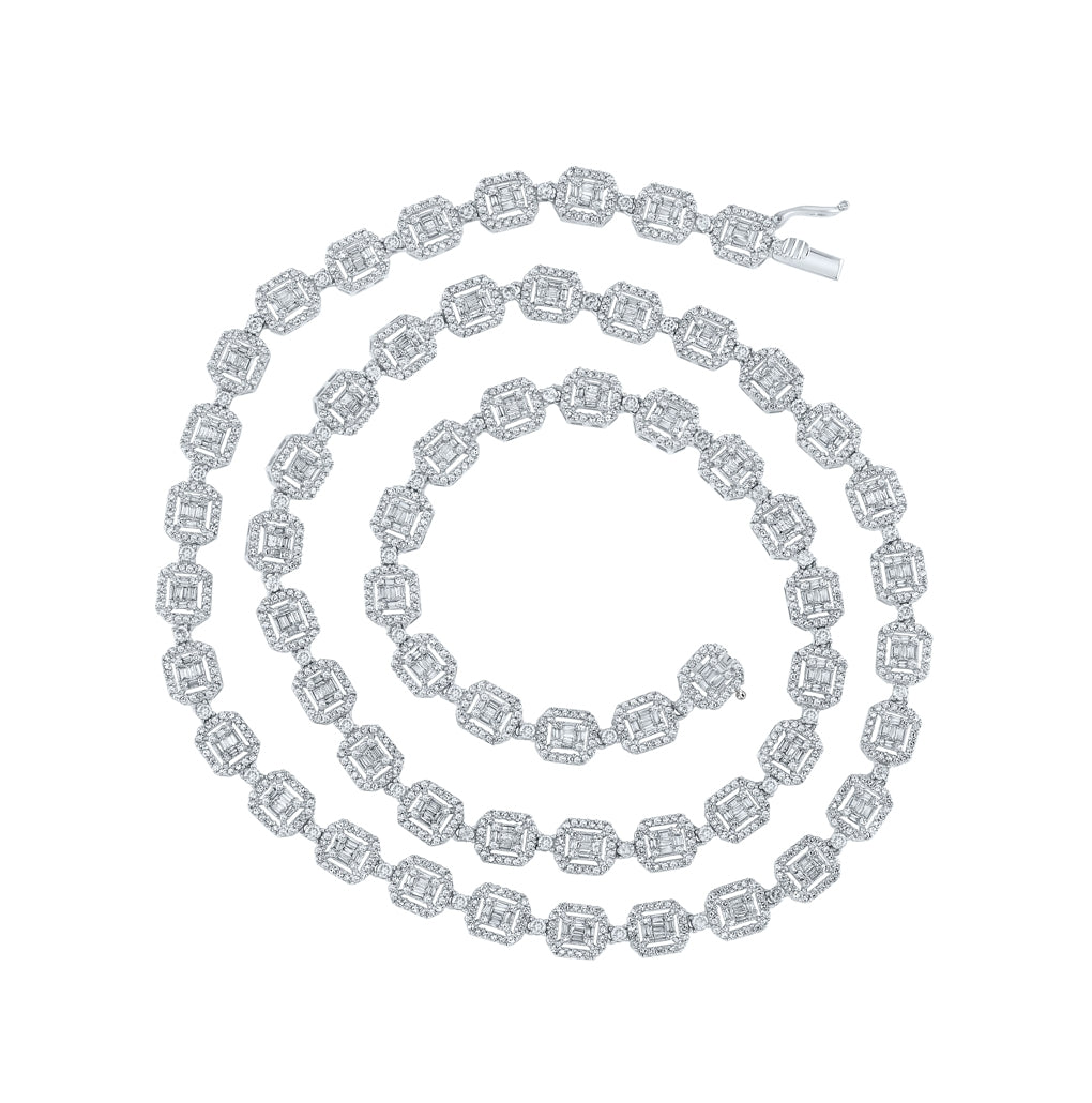 14kt White Gold 10 Ctw Diamond Nk (7.40mm) Square Baguette Mens Chain-24 Inch