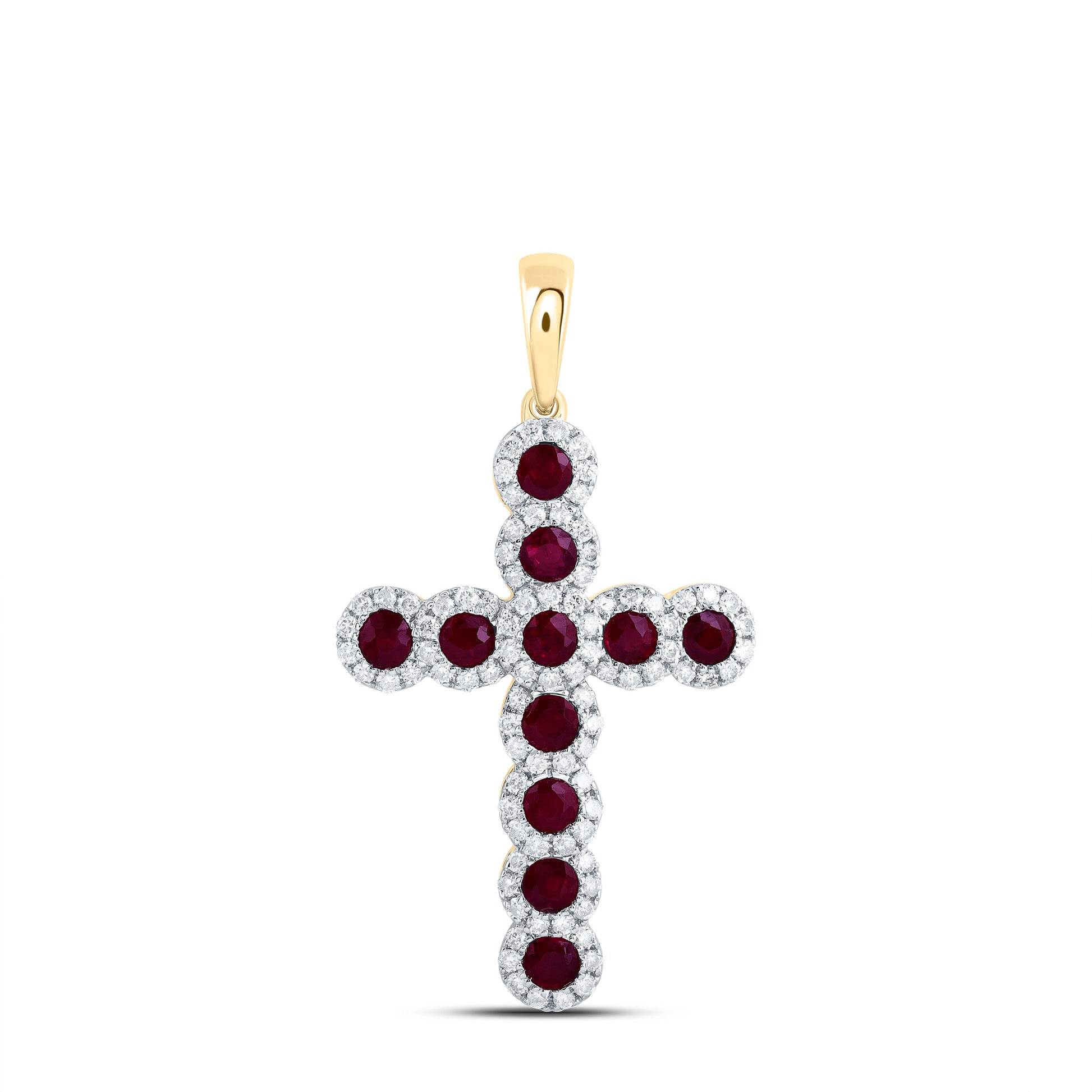 14kt Yellow Gold 1/2 Cttw Natural Diamond and 1 1/5 Cttw Round Ruby Natural Gem Cross Pendant