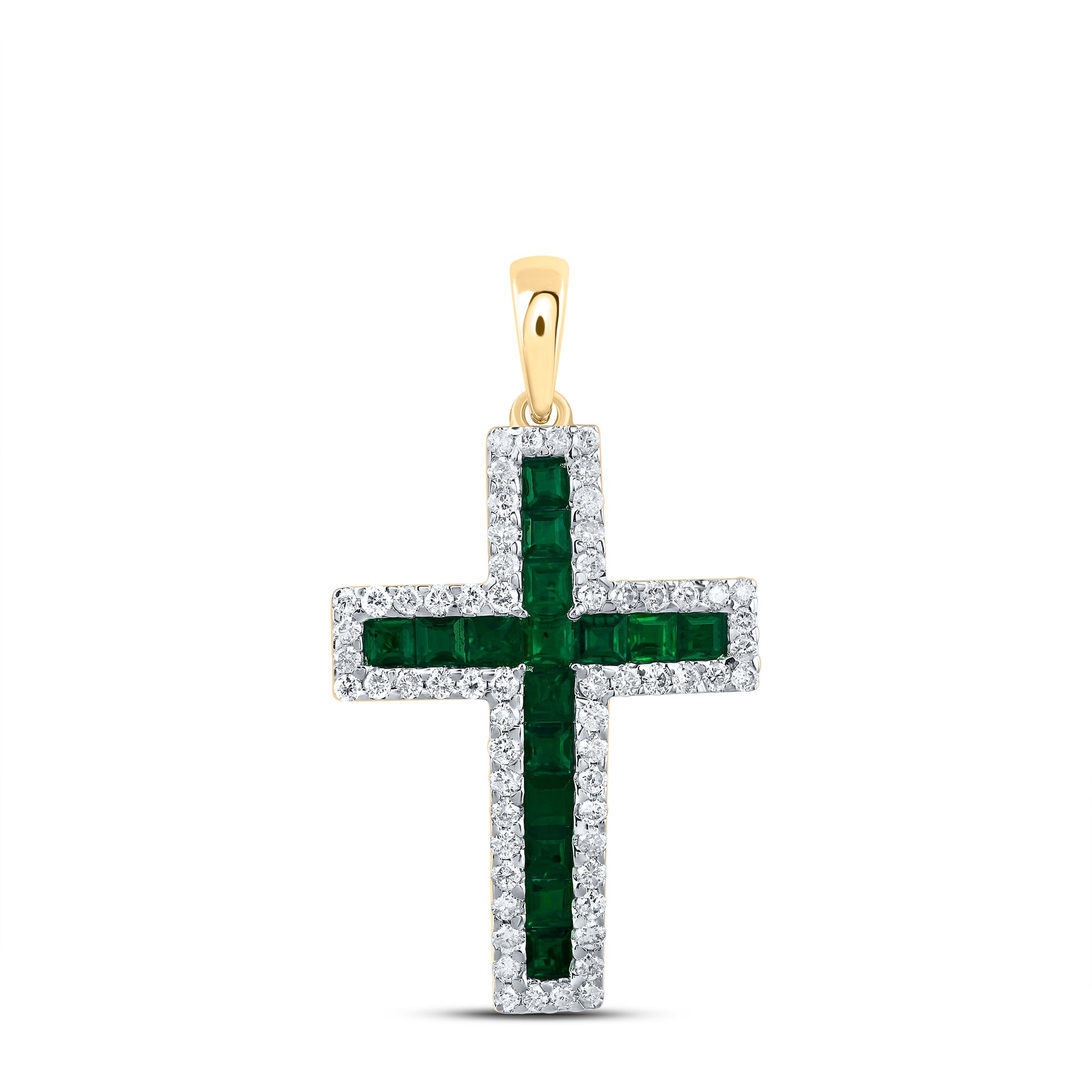 14kt Yellow Gold 1/3 Cttw Natural Diamond and 1 Cttw- Pr Emerald Natural Gem Cross Pendant