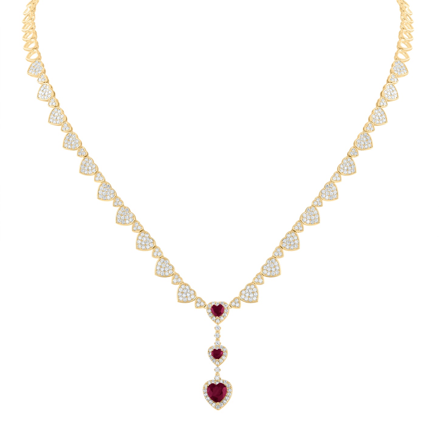 14kt Yellow Gold 2 5/8 Cttw Natural Diamond Ana M and 1 1/3 Cttw Heart Ruby Natural Gem Necklace, Length: 17 Inch