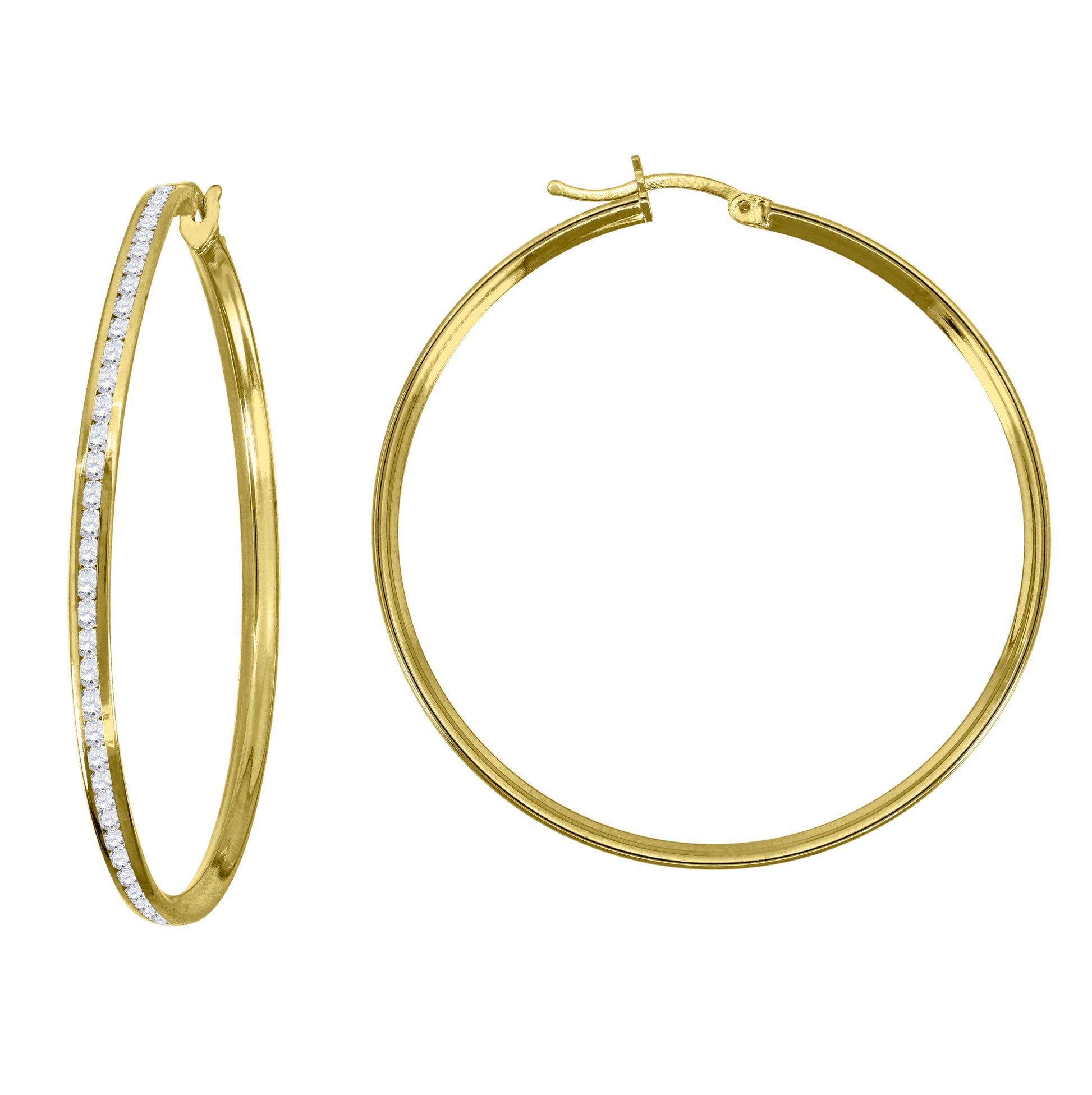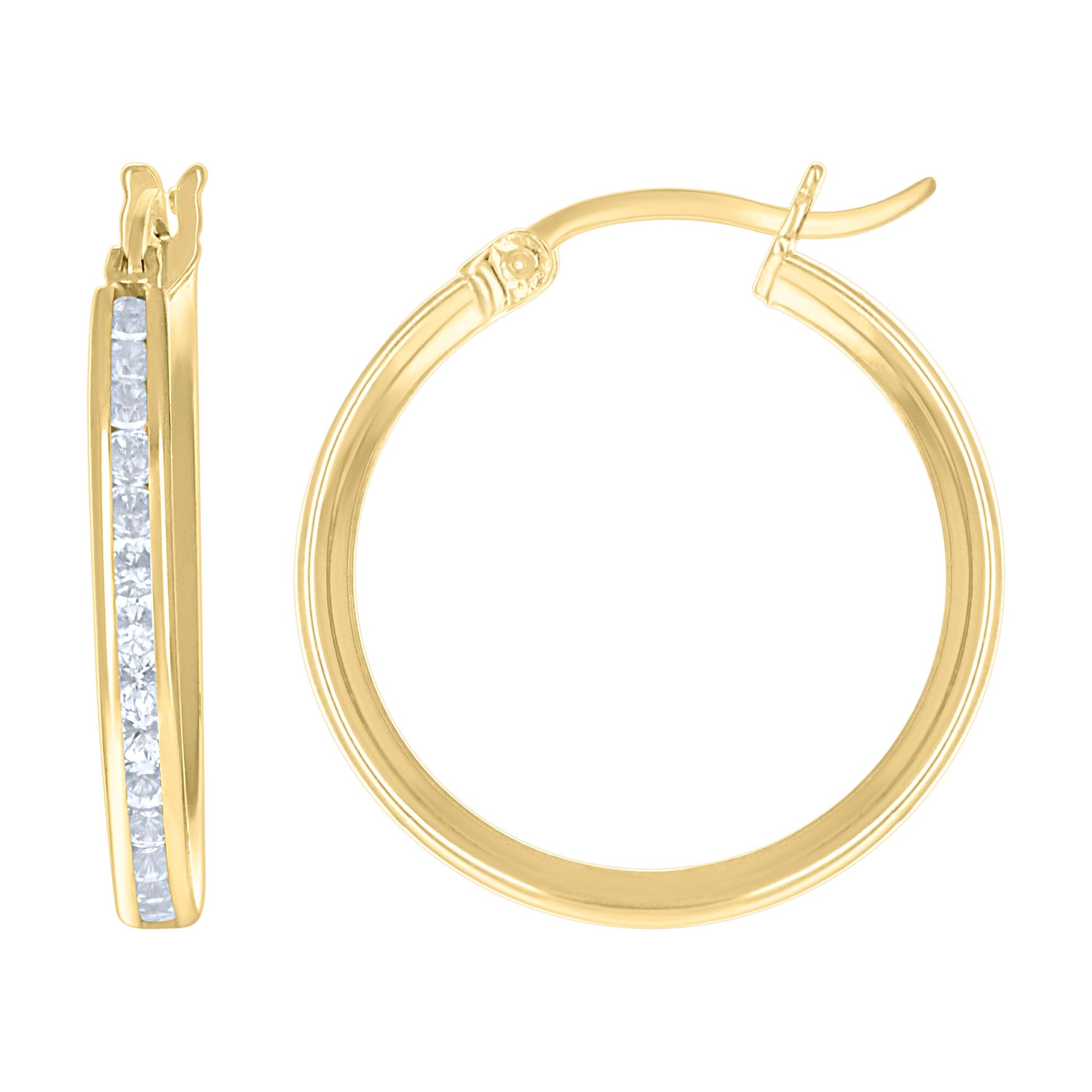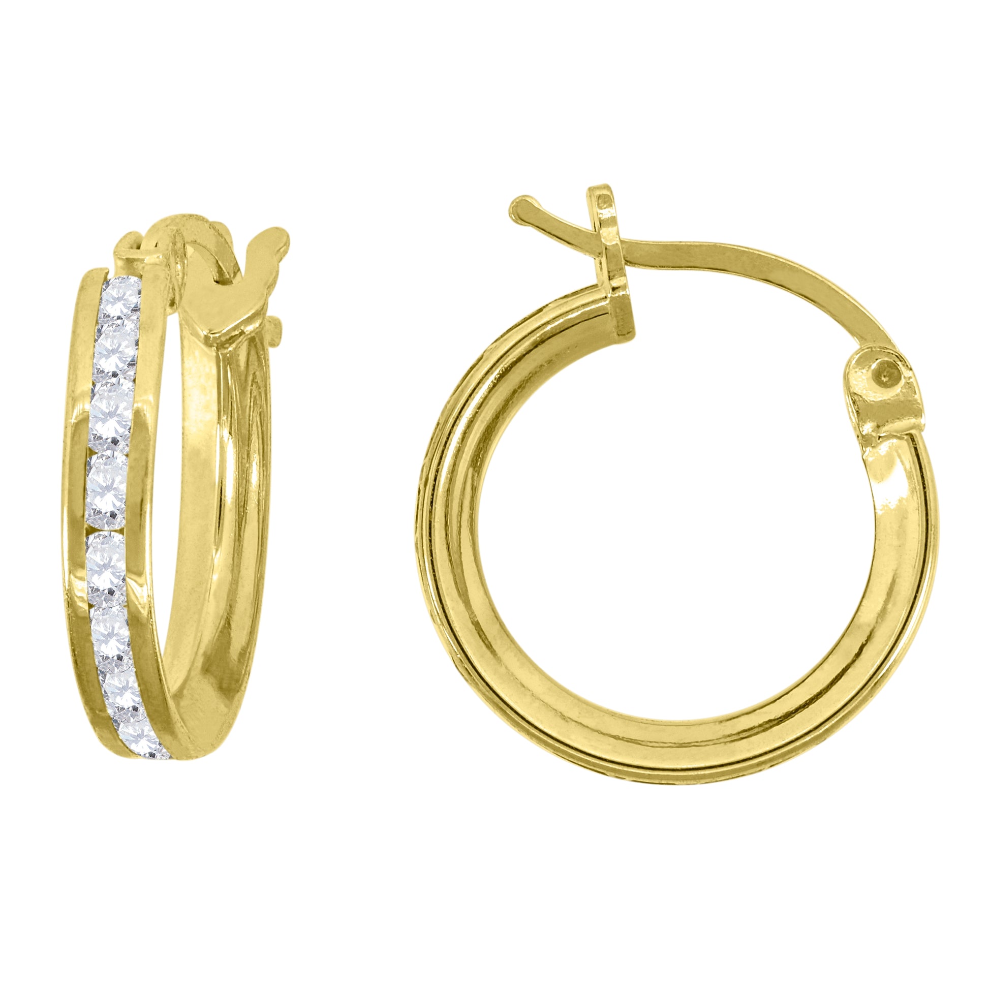 14K Yellow Gold Unisex Single Row Cubic Zirconia Huggie Hoop 2Mm Earrings