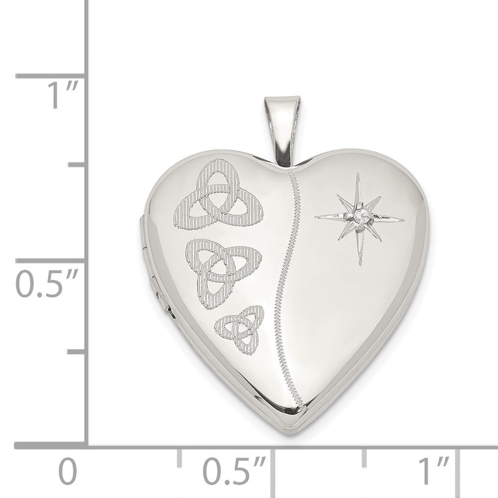 925 Sterling Silver 20mm Diamond Trinity Heart Locket Engravable Charm Pendant Jewelry Gifts (Length 0.98" Width 0.77")