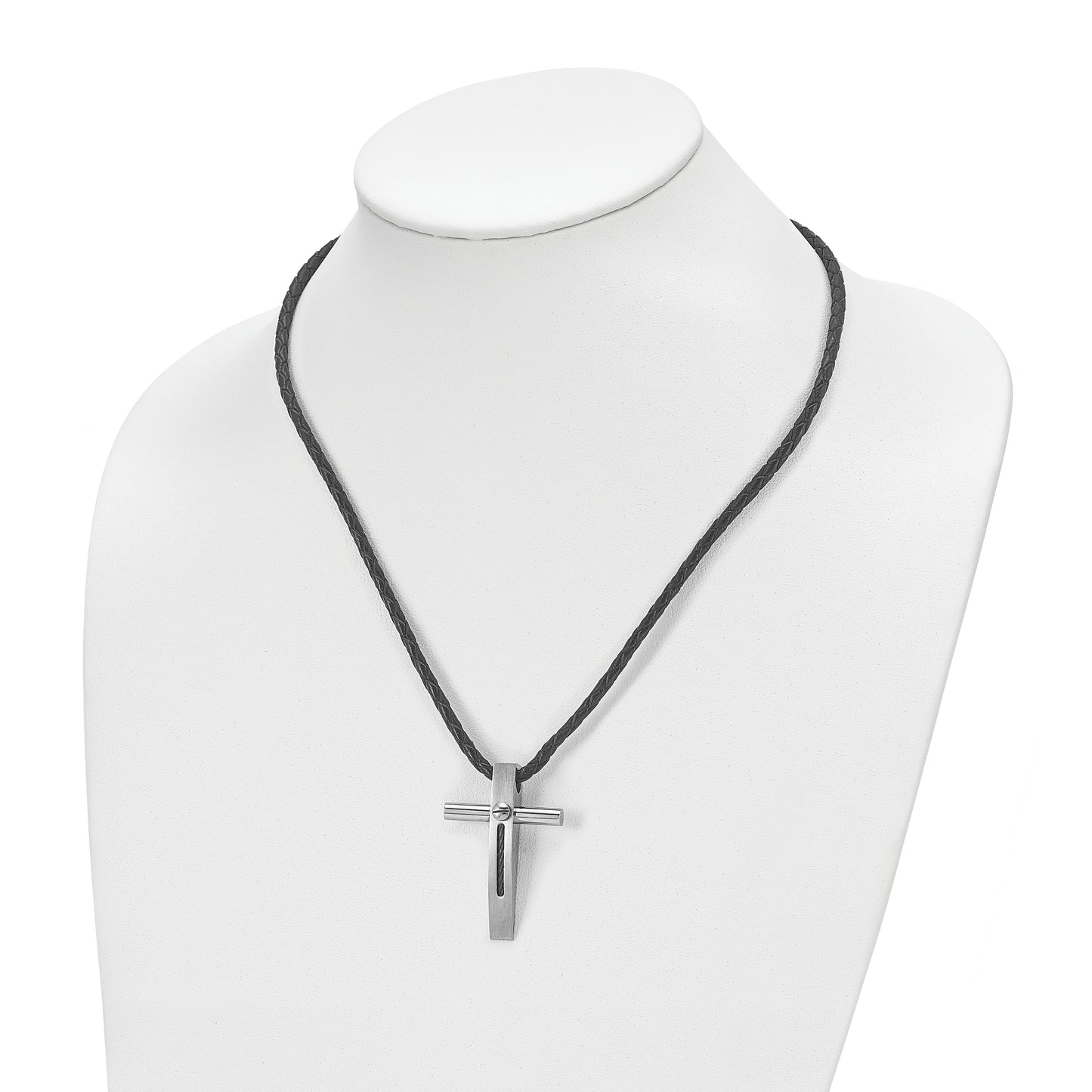 Chisel Stainless Steel Brushed and Polished Blue IP-plated Cable Cross Pendant on an 18 inch Leather Cord Necklace