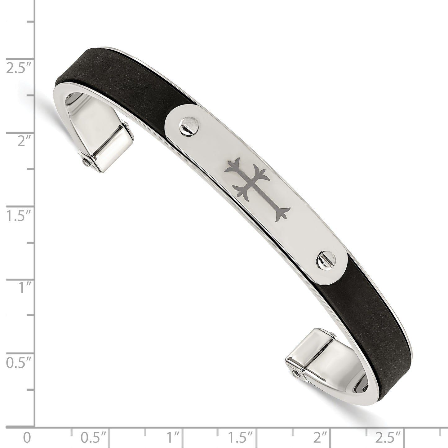Chisel Stainless Steel Polished with Black Rubber Laser Etched Cross Cuff Bangle