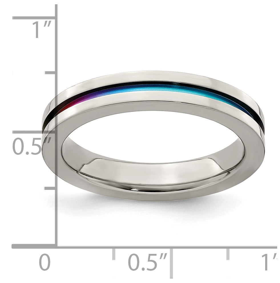 Edward Mirell Gray Titanium Rainbow Anodized Grooved Flat 4mm Band, Size 10.5