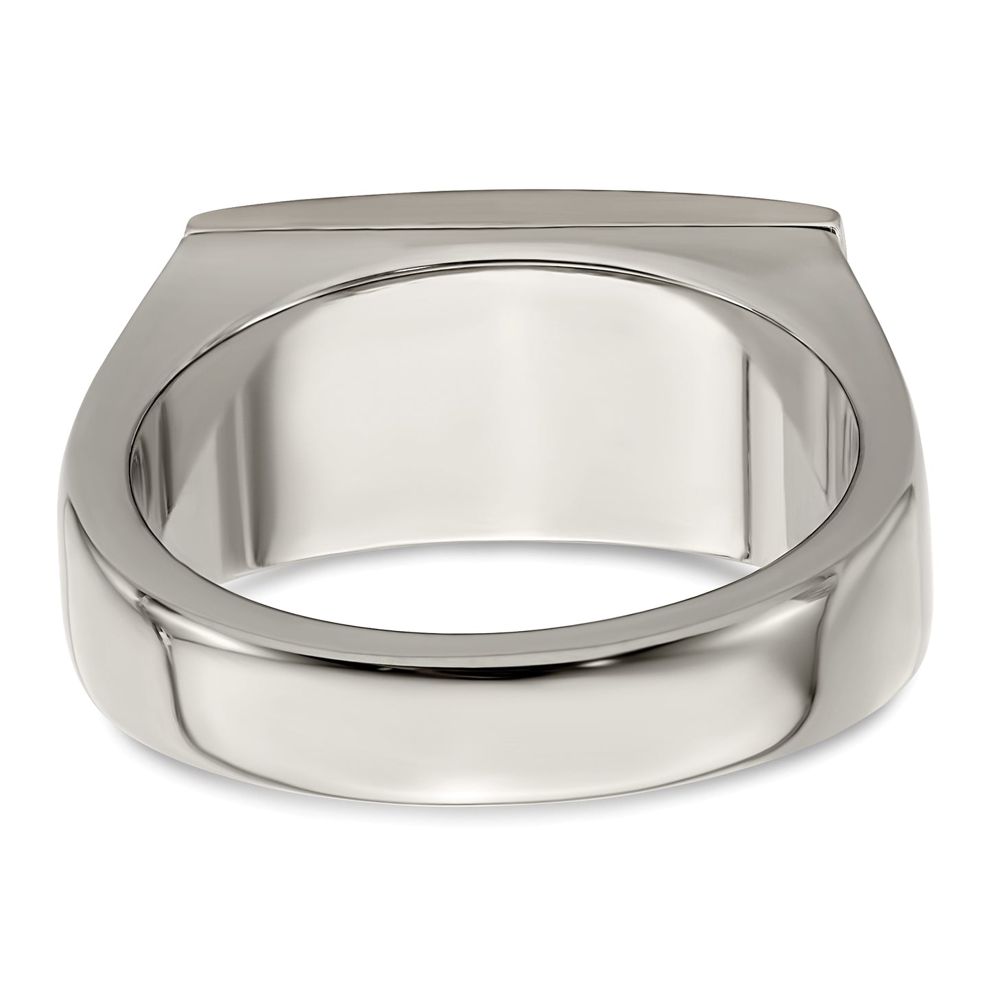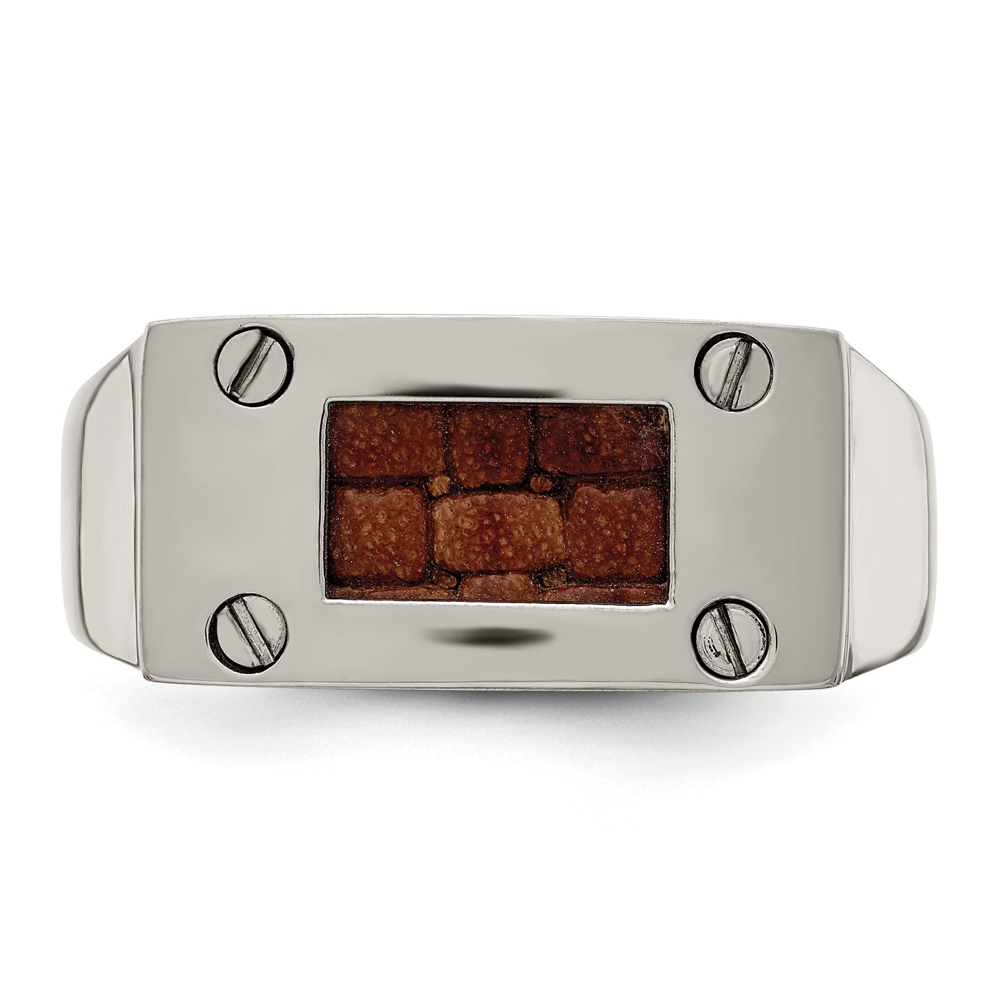 Edward Mirell Titanium Brown Leather Insert Polished Ring, Size 13