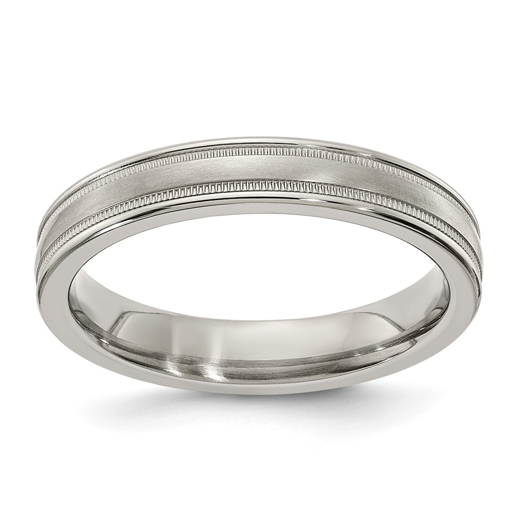 Edward Mirell Titanium Brushed & Polished Tri Dome Milgrain 4 mm Band, Size 10.5