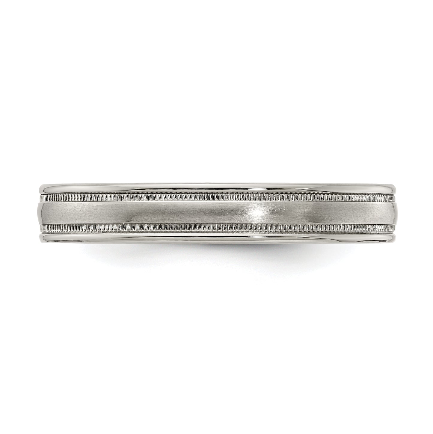 Edward Mirell Titanium Brushed & Polished Tri Dome Milgrain 4mm Band, Size 7.5