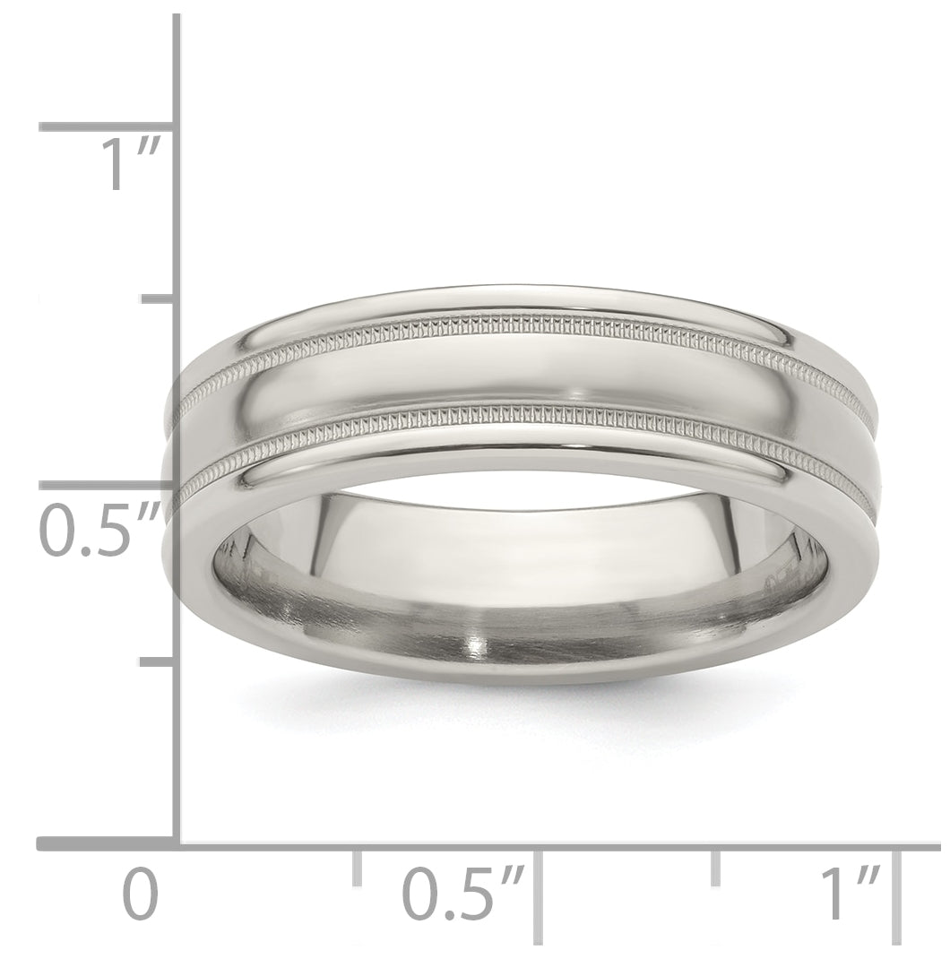 Edward Mirell Titanium Brushed Polished Tri Dome Milgrain 6mm Band Size 9