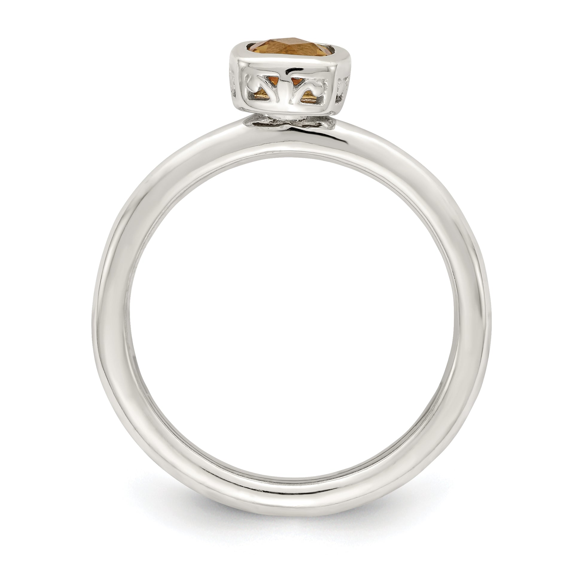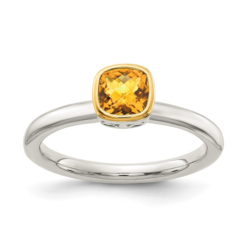 Shey Couture Sterling Silver Rhodium plated with 14k Accent Polished Cushion-cut Citrine Ring, Size 6