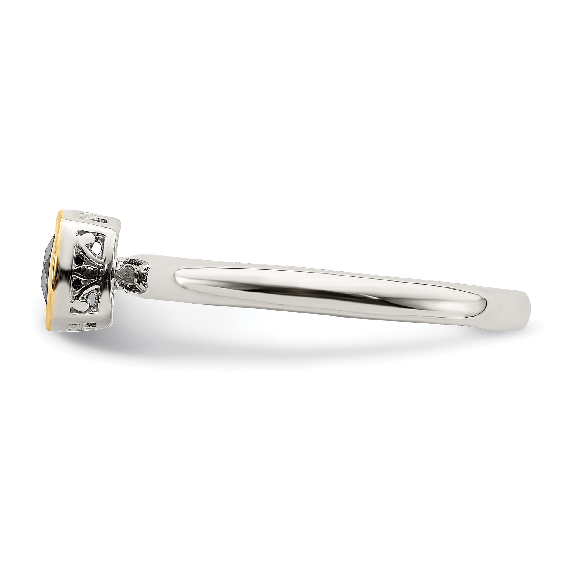 Shey Couture Sterling Silver Rhodium plated with 14K Accent Polished Cushion-cut Created Sapphire Ring, Size 7