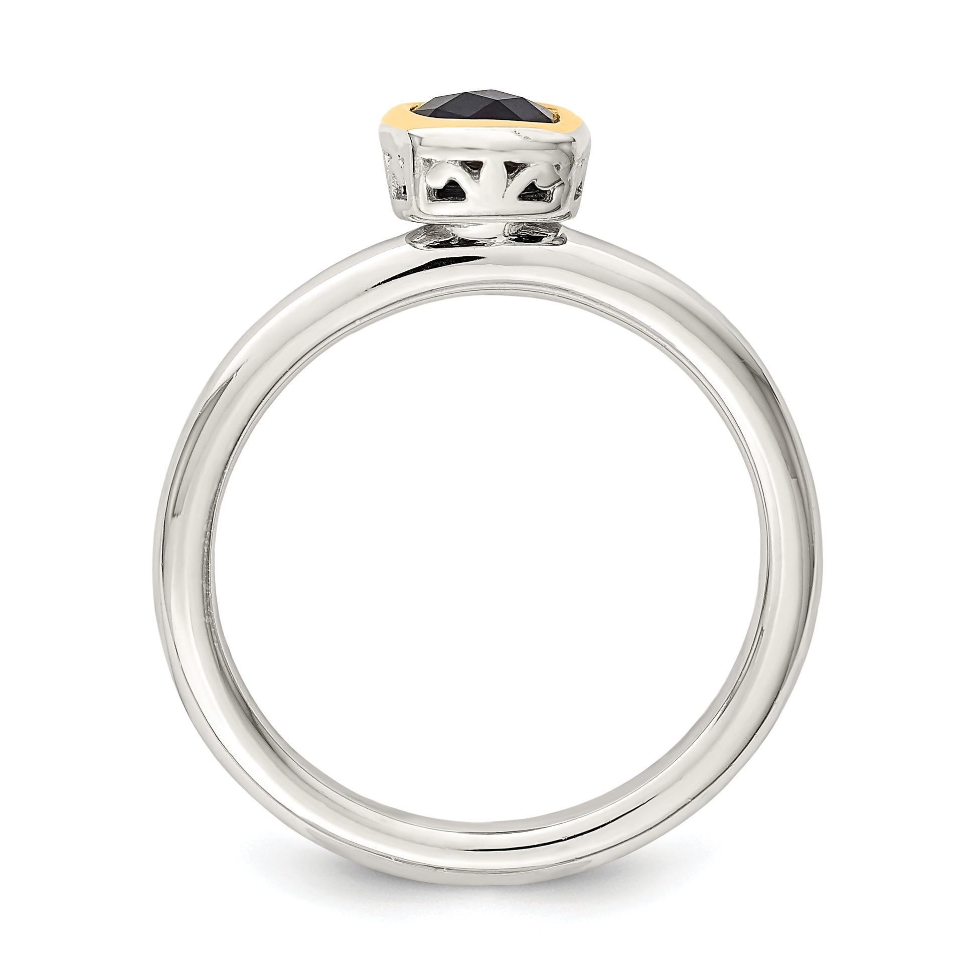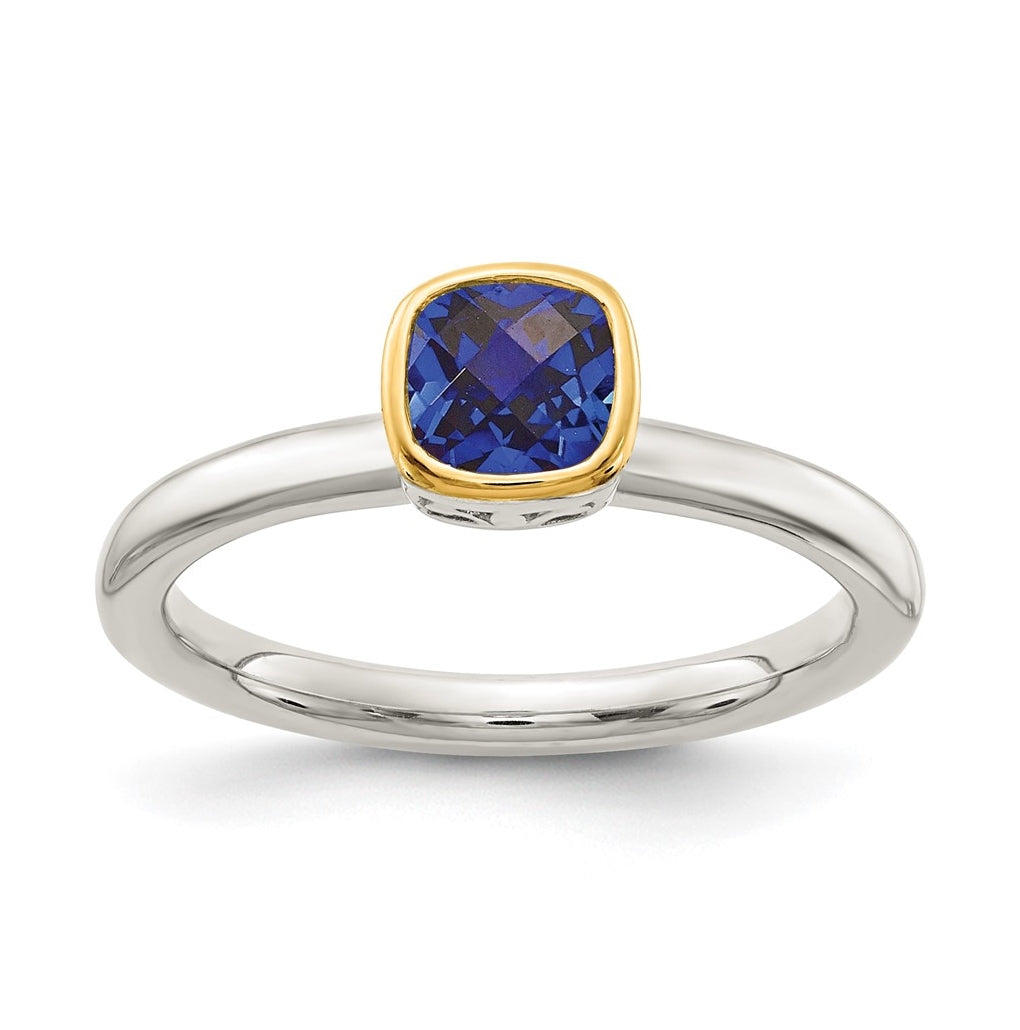 Shey Couture Sterling Silver Rhodium plated with 14K Accent Polished Cushion-cut Created Sapphire Ring, Size 8
