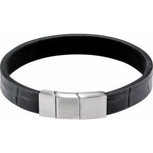 - Description: Leather Cord Bracelet With Brushed Stainless Steel Clasp
