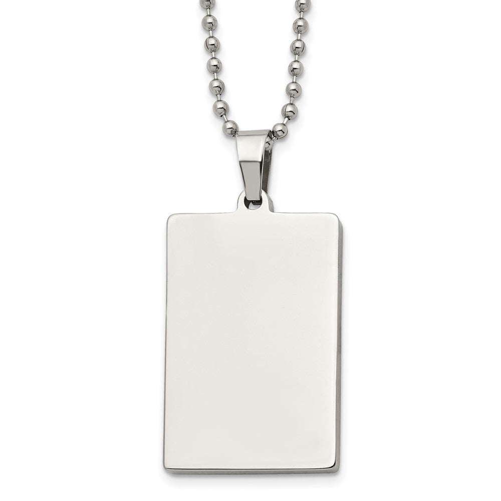 Stainless Steel Brushed Polished Square 4mm Rvsble Dog Tag Necklace Engravable Charm Pendant Jewelry Gifts (Length 24" Width 0.99")