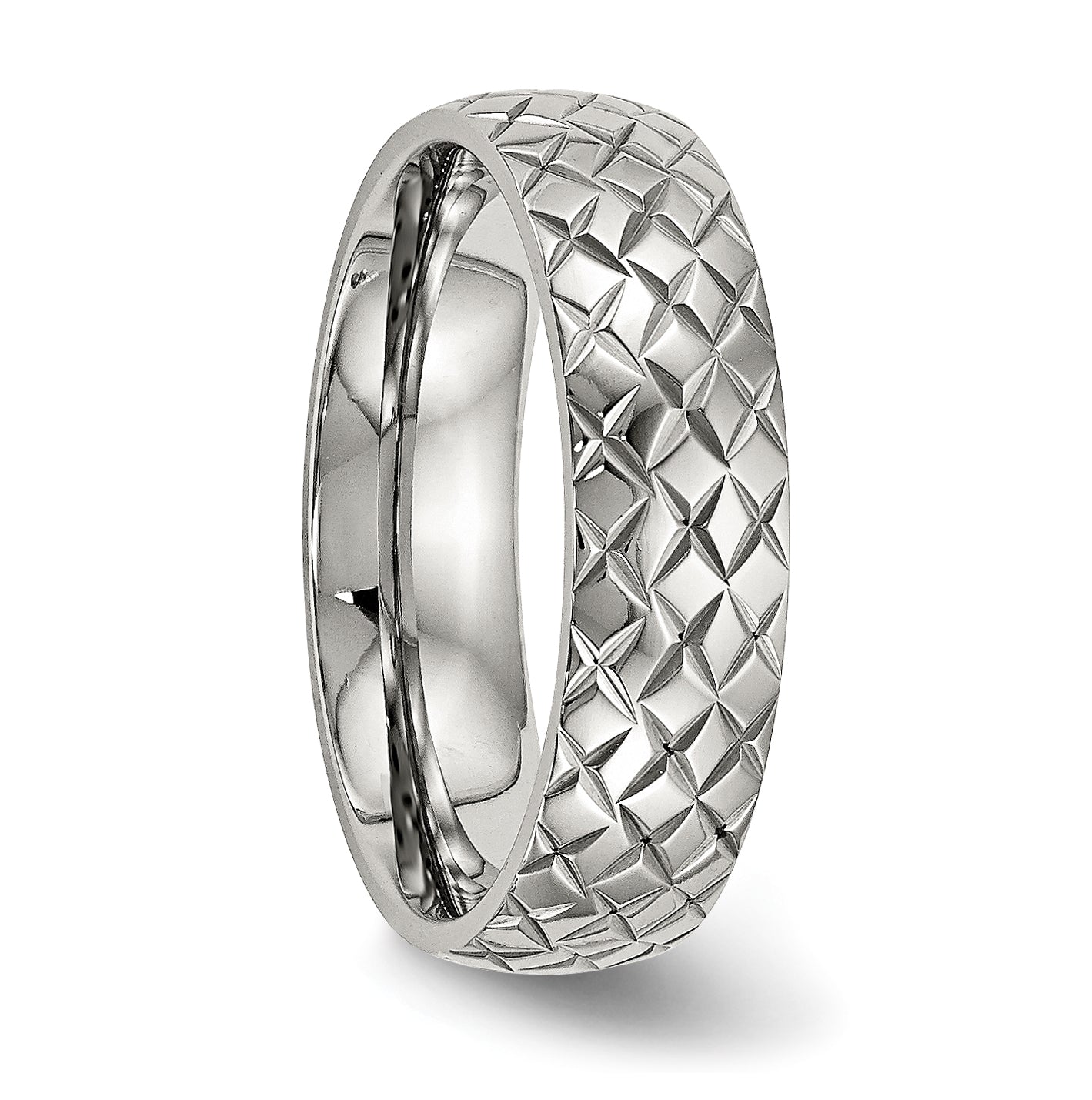 Stainless Steel Polished and Textured Criss Cross Design 6mm Band, Size 7