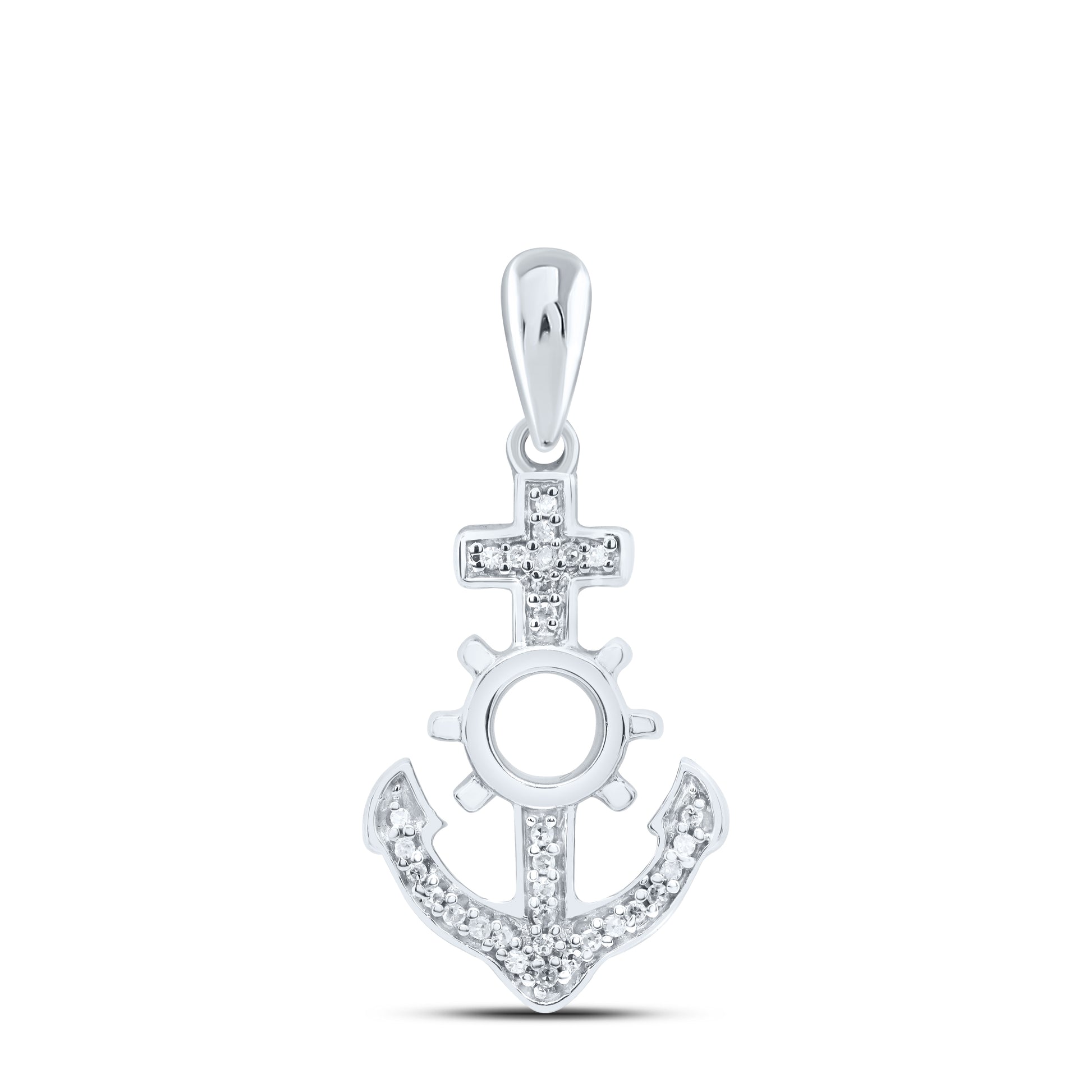 Sterling Silver 1/20 Cttw Natural Diamond Anchor Pendant