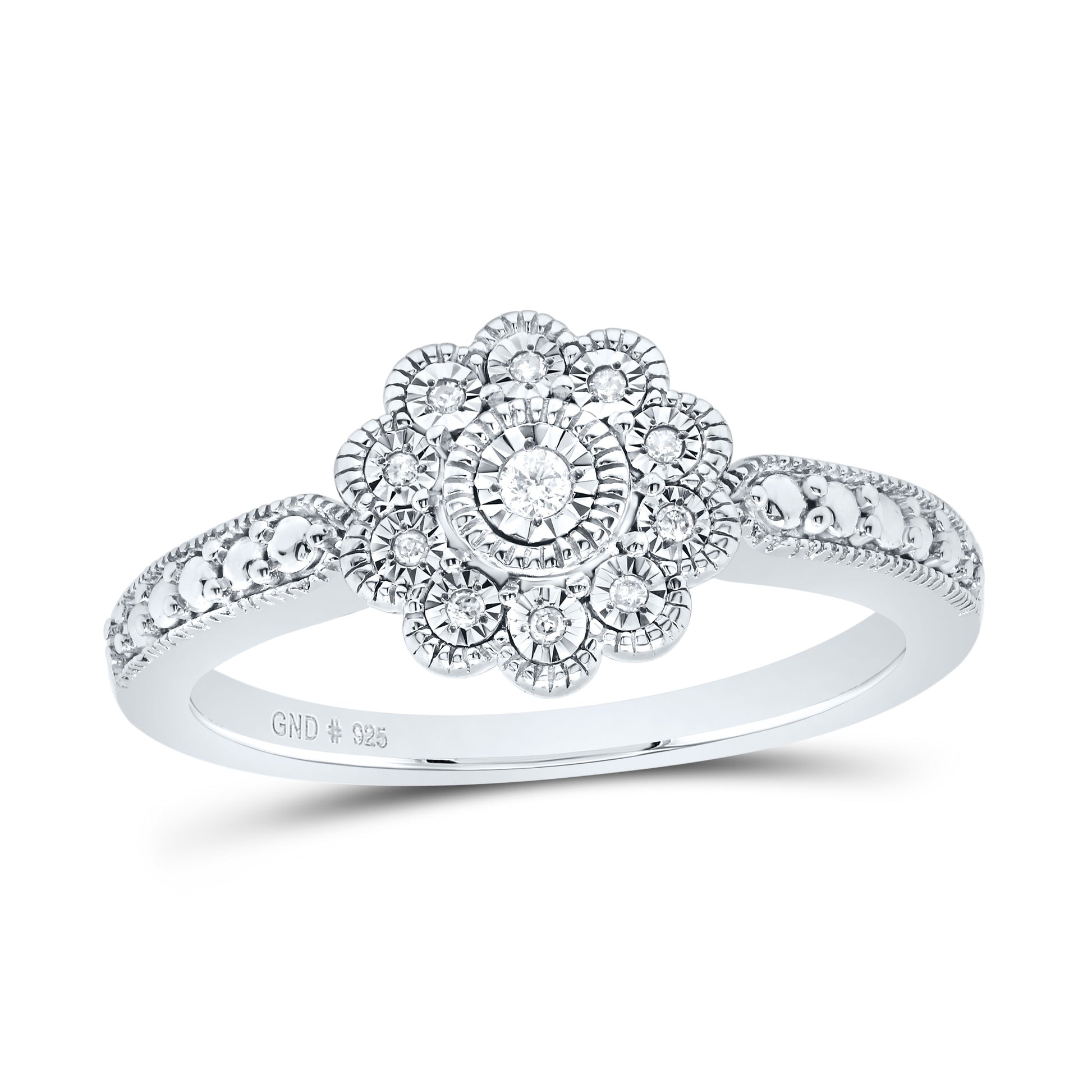 Sterling Silver 1/20 Cttw Natural Diamond Wedding Engagement Anniversary Flower Ring, Women Size: 5-9